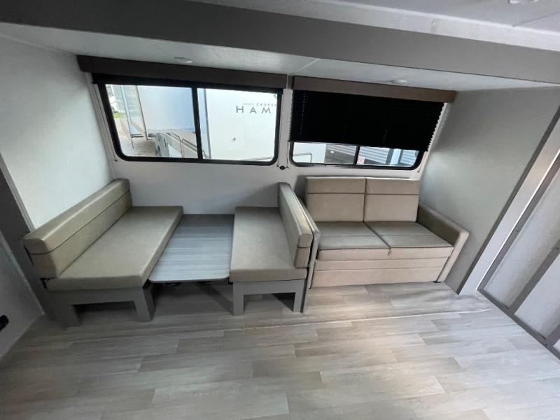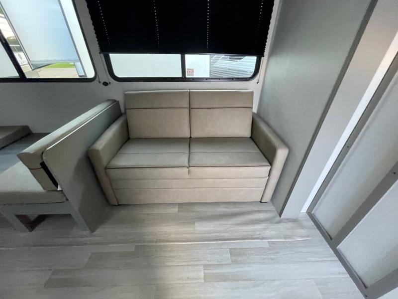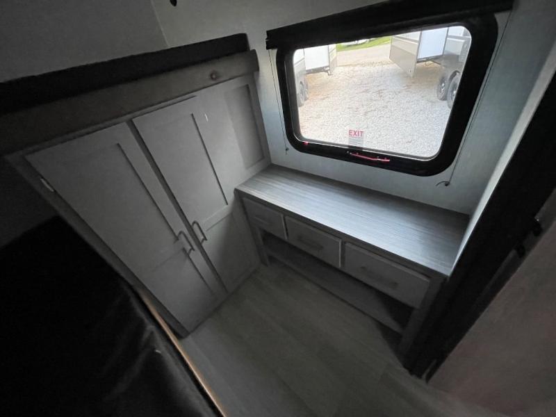 If you enjoy camping with extra friends and family, this travel trailer will be perfect for you! There is a rear bunkhouse with triple bunks, a dresser, plus a closet, making this room perfect for guests. Up front you'll find the private bedroom with a queen bed, dual nightstands and dual closets for your things, and the full bath is close by for convenience. The chef of your group will have a cooktop to prepare meals, ample counter space, plus a pantry for dry goods and snacks. Your crew can play a game at the booth dinette or relax on the sofa while dinner is being made, or they can relax outdoors under the 16' power awning!