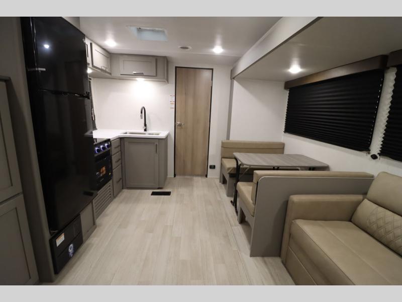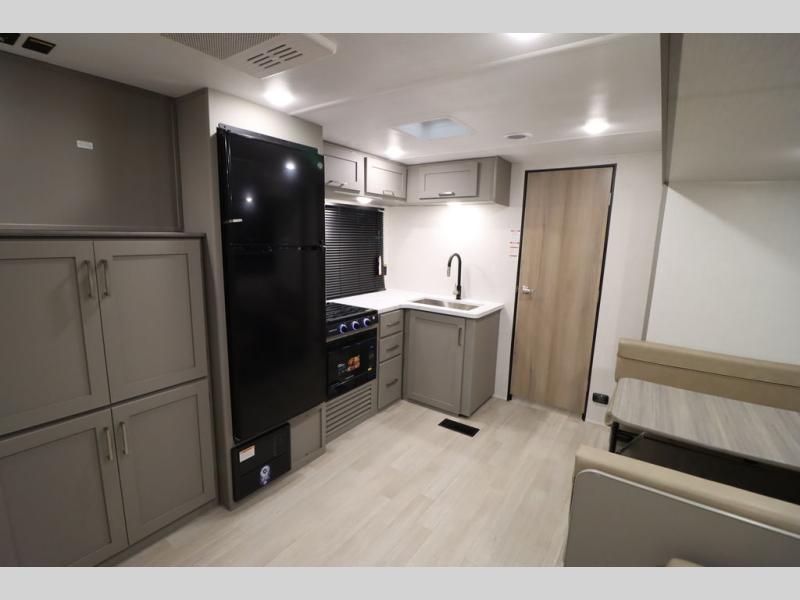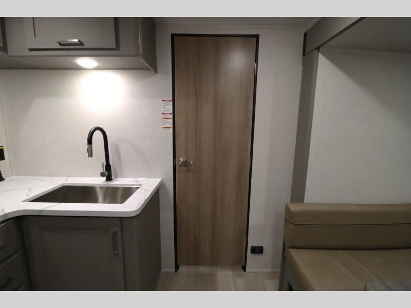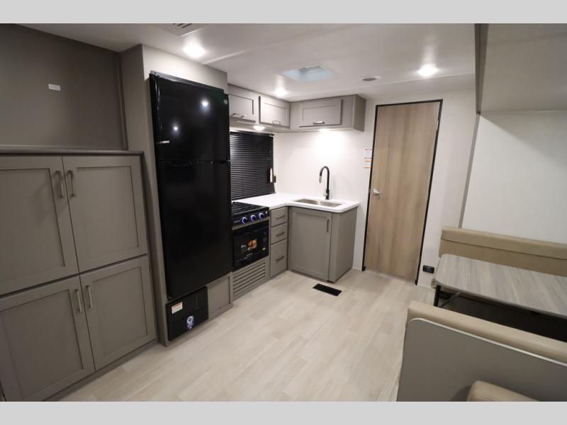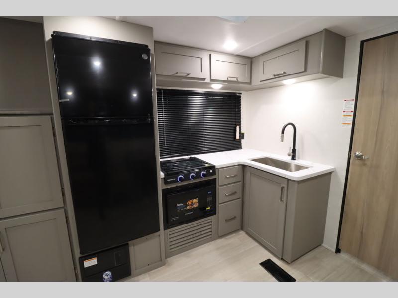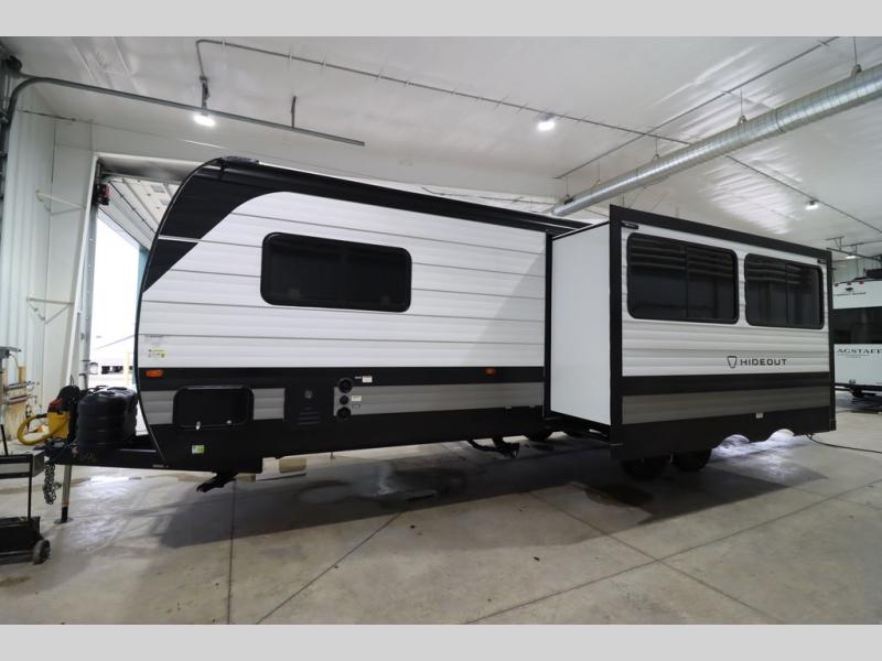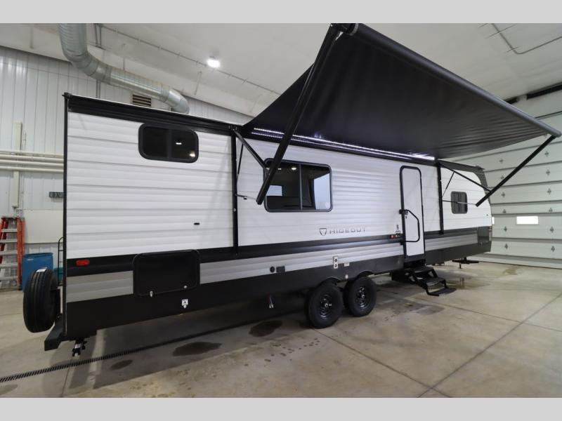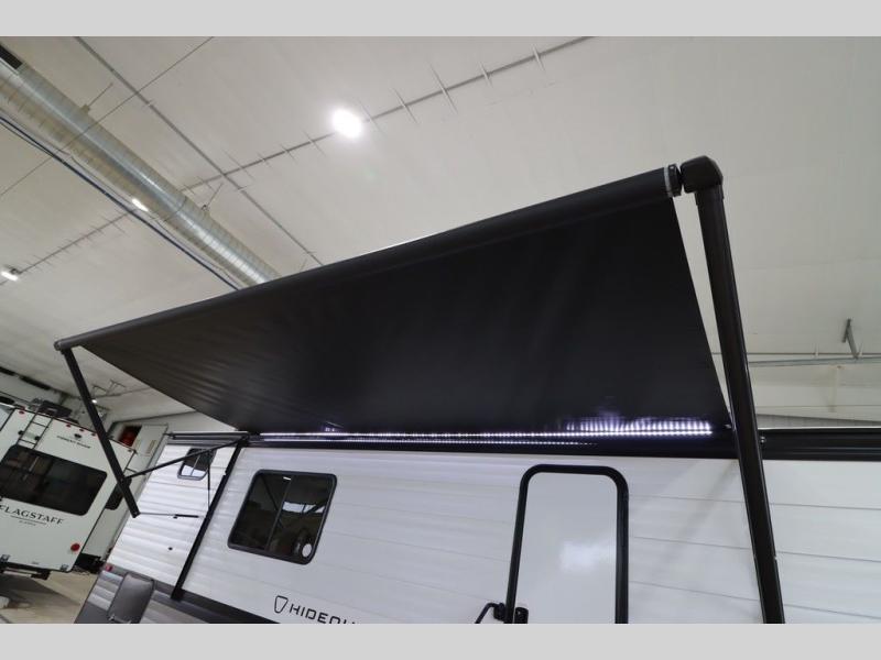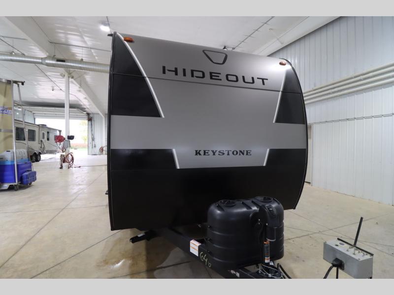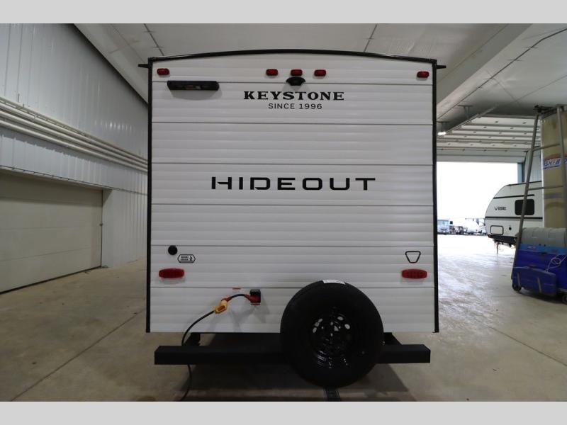With any Hideout Sport travel trailer by Keystone you will enjoy simplified camping solutions that won't break the bank! Each model is constructed with a durable AlphaPly TPO roof membrane tinted safety glass windows, a walkable roof, and an I-beam frame. There are power tongue jacks and heavy duty stabilizer jacks that will make it easier than ever to hitch up and go. An XL entry assist handle will also provide convenience, along with a power awning that will provide much wanted shade during the day. You will feel right at home with stylish decor, blackout night shades, and cozy bed with storage underneath!