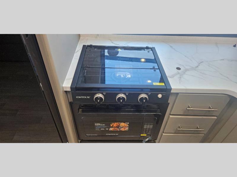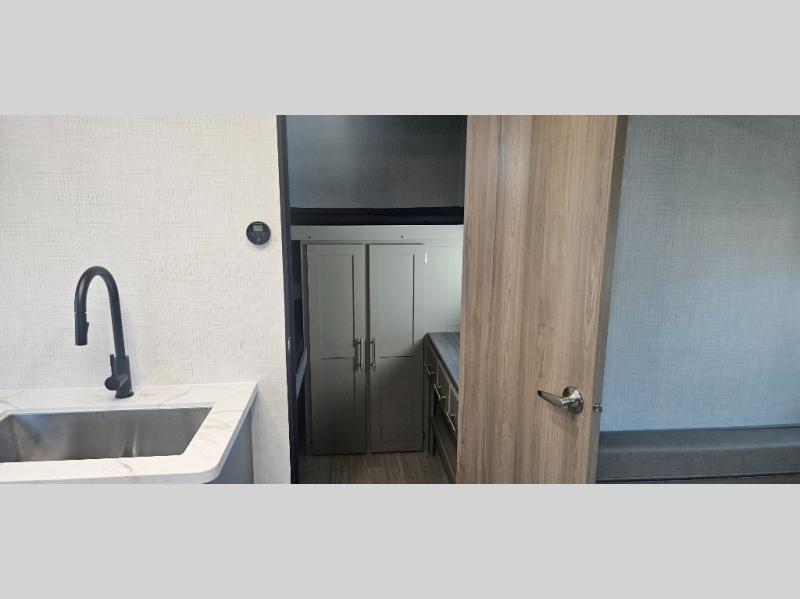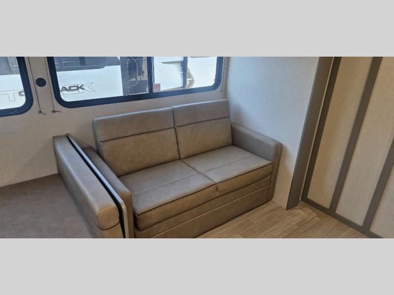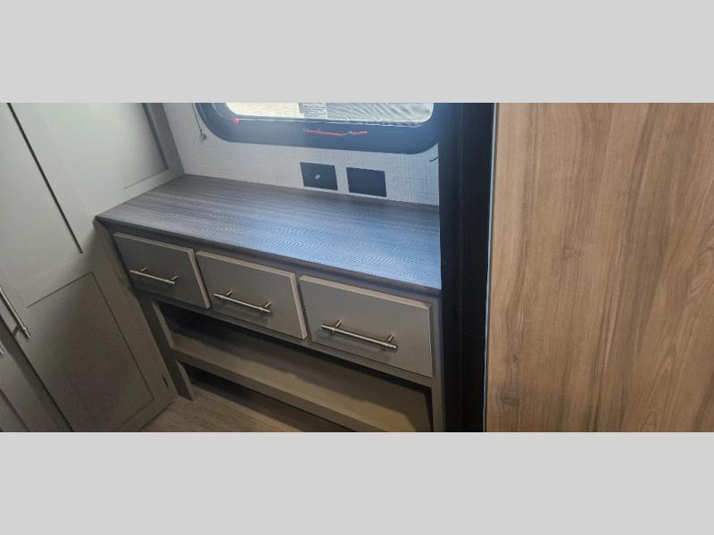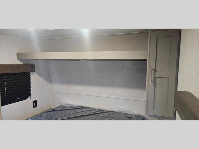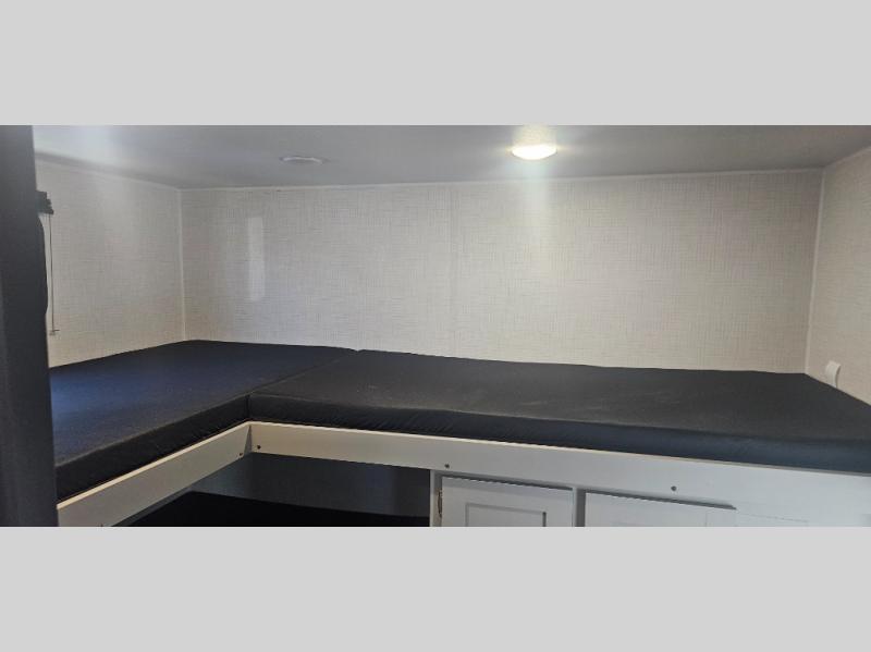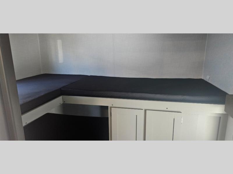 If you enjoy camping with extra friends and family, this travel trailer will be perfect for you! There is a rear bunkhouse with triple bunks, a dresser, plus a closet, making this room perfect for guests. Up front you'll find the private bedroom with a queen bed, dual nightstands and dual closets for your things, and the full bath is close by for convenience. The chef of your group will have a cooktop to prepare meals, ample counter space, plus a pantry for dry goods and snacks. Your crew can play a game at the booth dinette or relax on the sofa while dinner is being made, or they can relax outdoors under the 16' power awning!