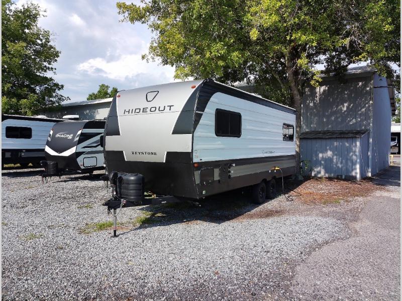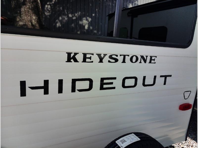 With any Hideout Sport Double Axle travel trailer by Keystone you will enjoy simplified camping solutions that won't break the bank! Each model is constructed with a durable aluminum exterior, tinted safety glass windows, a walkable roof, and an I-beam frame. There are power tongue jacks and heavy duty stabilizer jacks that will make it easier than ever to hitch up and go. An XL entry assist handle will also provide convenience, along with a power awning that will provide much wanted shade during the day. You will feel right at home inside with stylish decor, blackout night shades, and cozy queen bed with storage underneath!