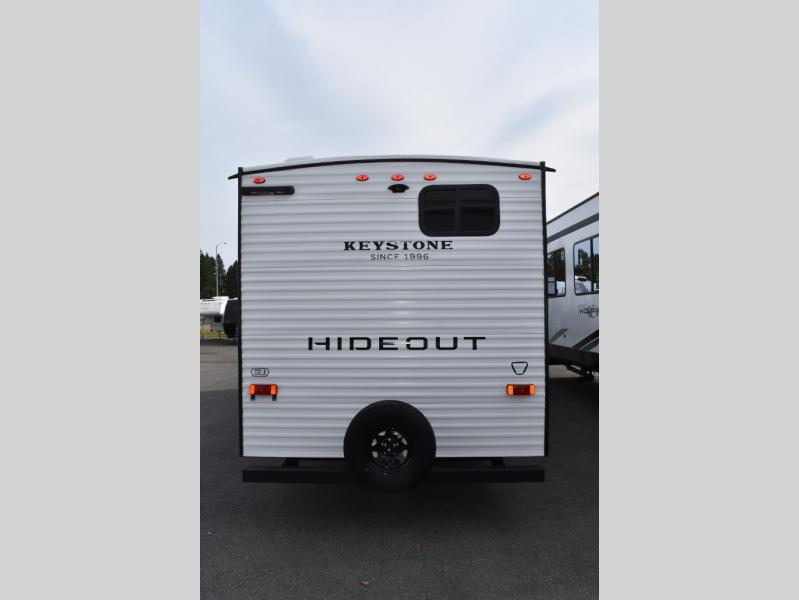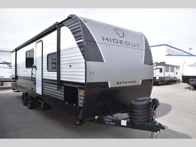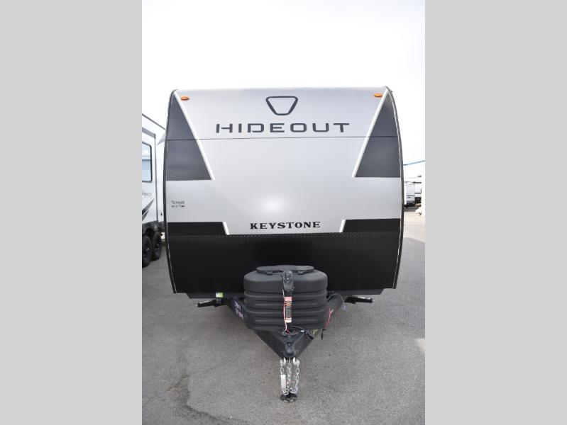 With any Hideout Sport Double Axle travel trailer by Keystone you will enjoy simplified camping solutions that won't break the bank! Each model is constructed with a durable AlphaPly TPO roof membrane tinted safety glass windows, and an I-beam frame. There are power tongue jacks and heavy duty stabilizer jacks that will make it easier than ever to hitch up and go. An XL entry assist handle will also provide convenience, along with a power awning that will provide much wanted shade during the day. You will feel right at home with stylish decor, blackout night shades, and cozy bed with storage underneath!