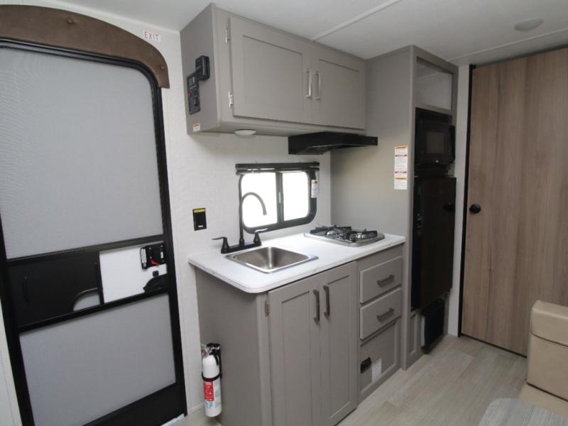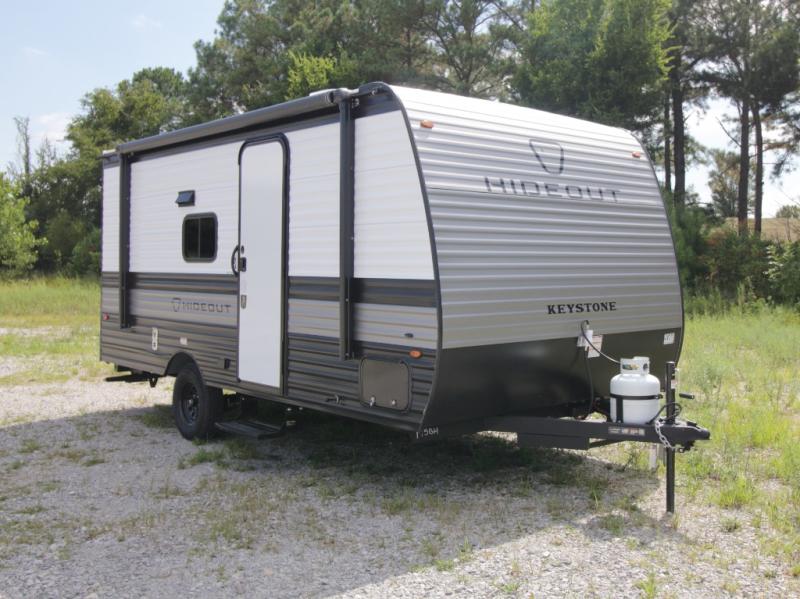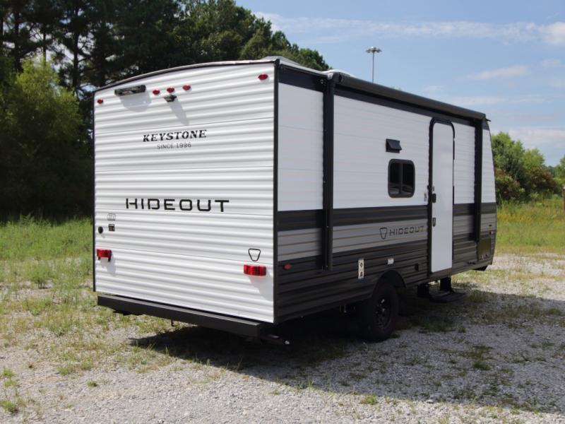 Make mealtime easy with a fully equipped galley kitchen and enjoy shaded outdoor lounging under the 10' power awning in the 2026 Keystone Hideout 175BH.