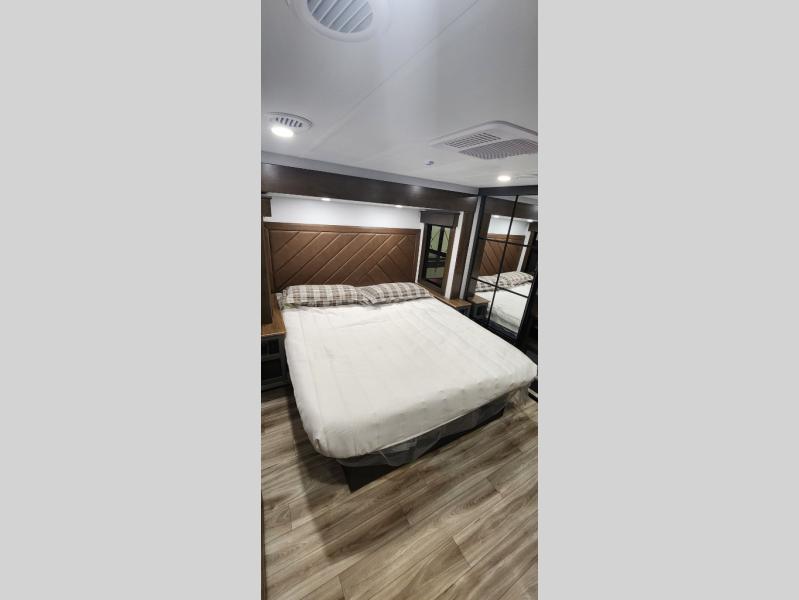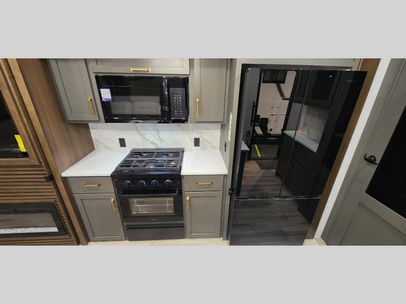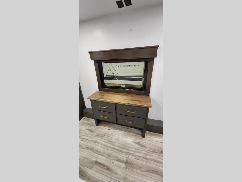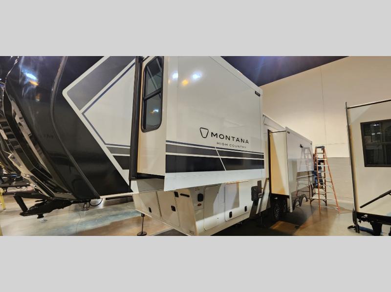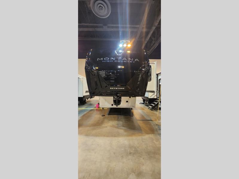With any Montana High Country fifth wheel by Keystone, you'll find comfort and convenience at every turn! Each unit is built with a fully walkable roof with an Alpha seamless TPO membrane system, 2" thick composite backed high-gloss fiberglass sidewalls, plus an insulated underbelly with forced hot air and electric tank heaters for added protection against the elements. The Blade Pure airflow system provides efficient cooling, and the Tru-Fit slide construction is a durable slide design that minimizes functional motor structural stress and resists leaking. Inside, you'll find roller shades throughout, premium solid surface kitchen countertops, bedside USB and 110V outlets, plus a porcelain foot flush toilet in the bath to name a few comforts.