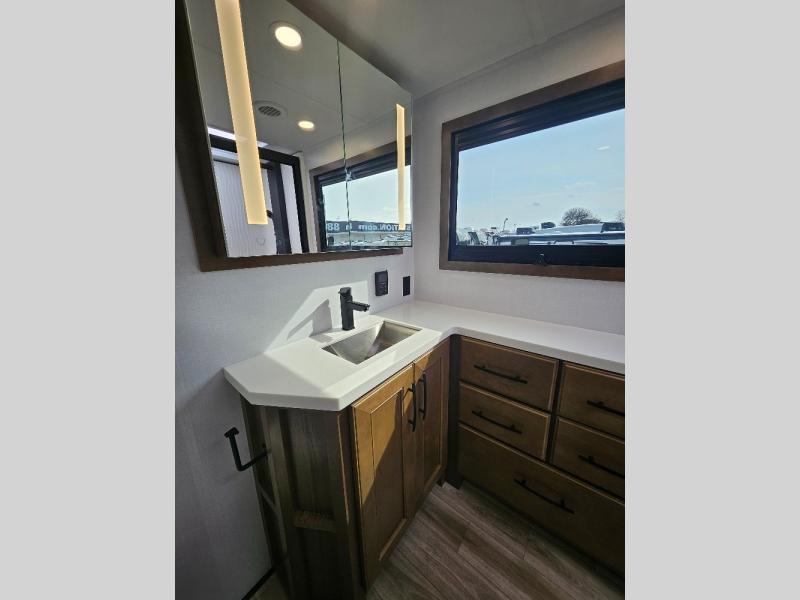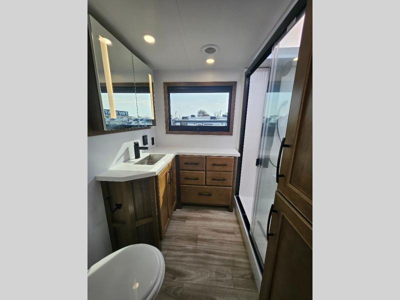 Enjoy luxury, innovation, and the outdoors in any one of Montana's finest fifth wheels. Each set the standard with exceptional features, and exciting factory installed options to provide you a great home on the road. Keystone's 12" I-beam chassis with z-frame technology provides a strong and durable foundation to your fifth wheel, and the four-season living package will help extend your camping season. There are also square frameless windows outside, along with storage solutions, and a hydraulic leveling system that will have you set up in no-time! Inside, you'll love the hardwood cabinetry, solid surface countertops, spacious showers, and cozy bedrooms!