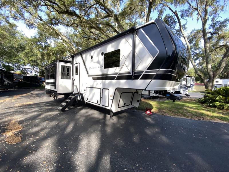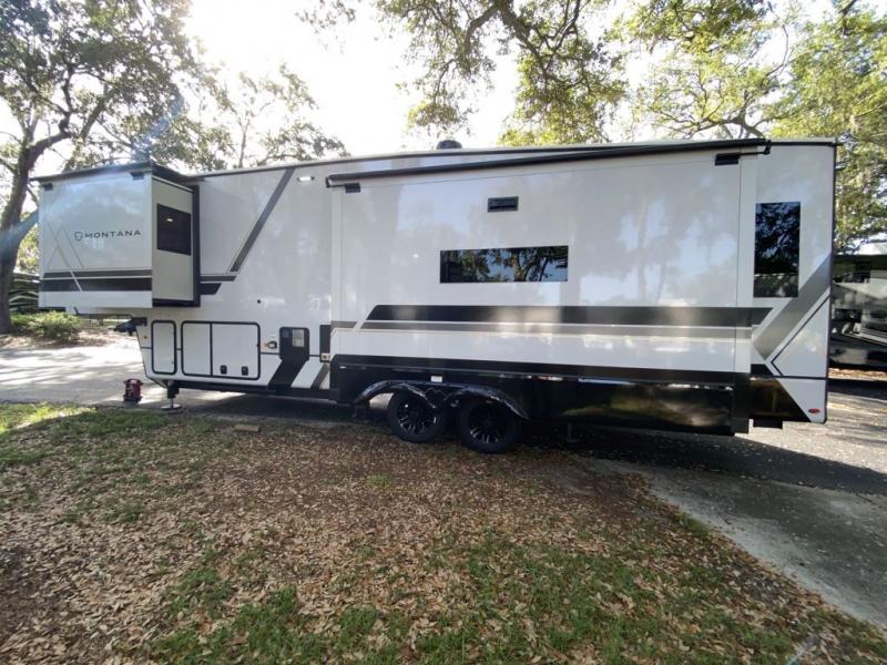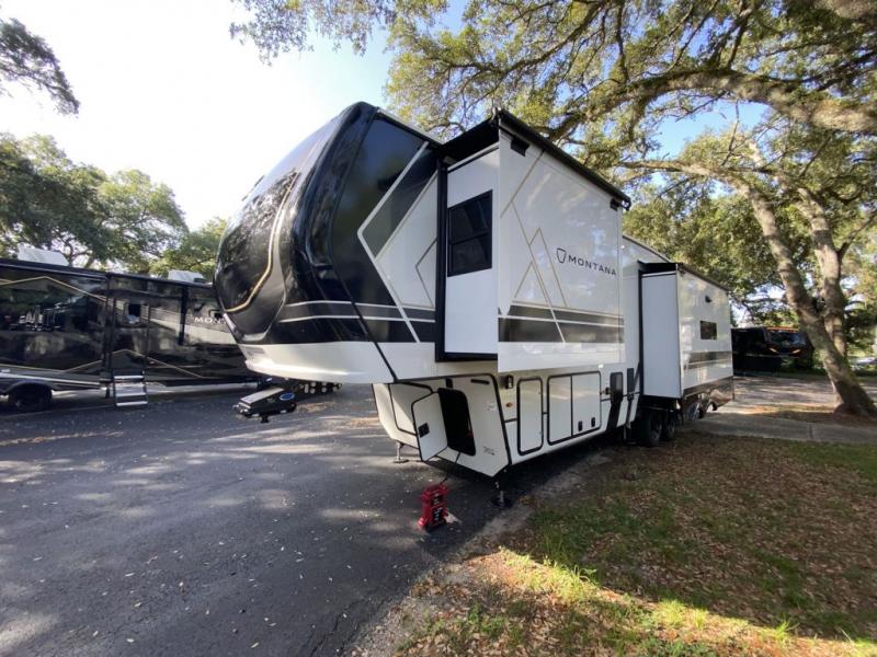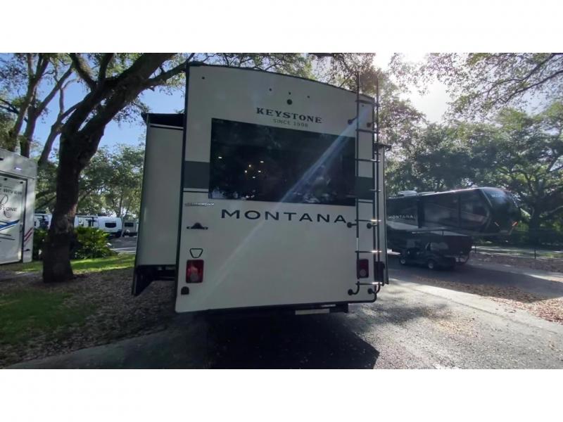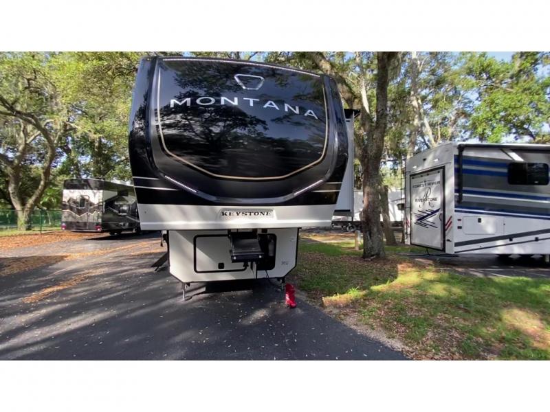 Enjoy luxury, innovation, and the outdoors in any one of Montana's finest fifth wheels. Each set the standard with exceptional features, and exciting factory installed options to provide you a great home on the road. Keystone's 12" I-beam chassis with z-frame technology provides a strong and durable foundation to your fifth wheel, and the four season living package will help extend your camping season. A few other construction features you will appreciate include a MORryde CRE3000 suspension, a fully walkable roof with an alpha seamless TPO membrane system, and 4k square frameless tinted safety glass windows. Each feature stylish interiors with two decor choices paired with beautiful hardwood cabinetry, Beauflor vinyl flooring throughout, central vacuum, plus a La-Z-Boy furniture package for all-around comfort!
