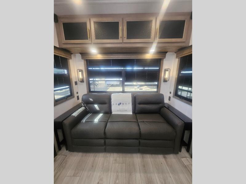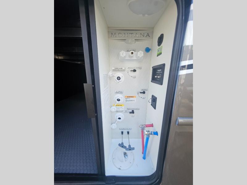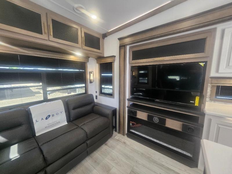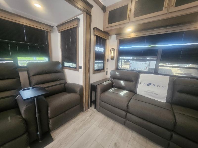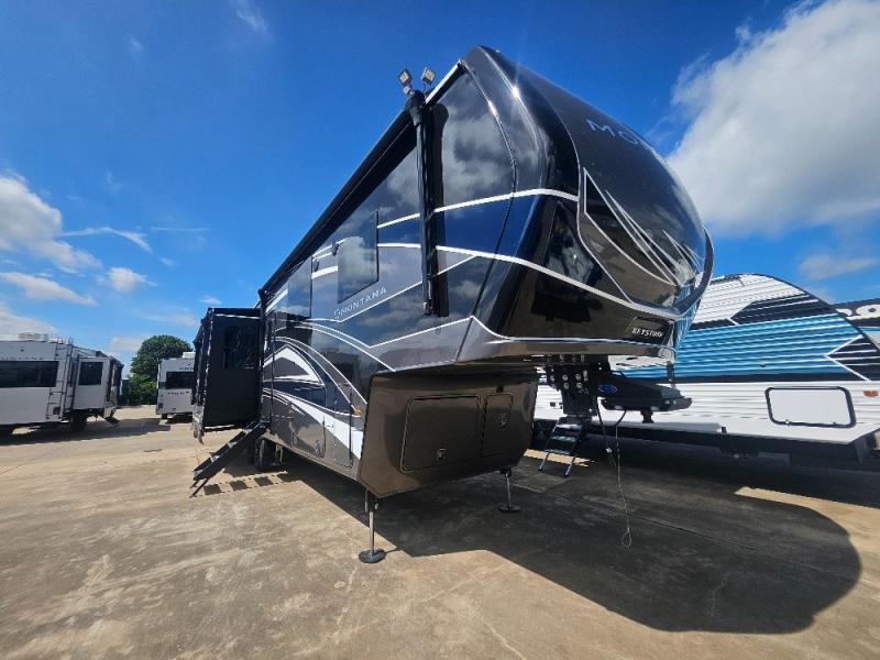 Enjoy luxury, innovation, and the outdoors in any one of Montana's finest fifth wheels. Each set the standard with exceptional features, and exciting factory installed options to provide you a great home on the road. Keystone's 12" I-beam chassis with z-frame technology provides a strong and durable foundation to your fifth wheel, and the four season living package will help extend your camping season. A few other construction features you will appreciate include a MORryde CRE3000 suspension, a fully walkable roof with an alpha seamless TPO membrane system, and 4k square frameless tinted safety glass windows. Each feature stylish interiors with two decor choices paired with beautiful hardwood cabinetry, Beauflor vinyl flooring throughout, central vacuum, plus a La-Z-Boy furniture package for all-around comfort!
