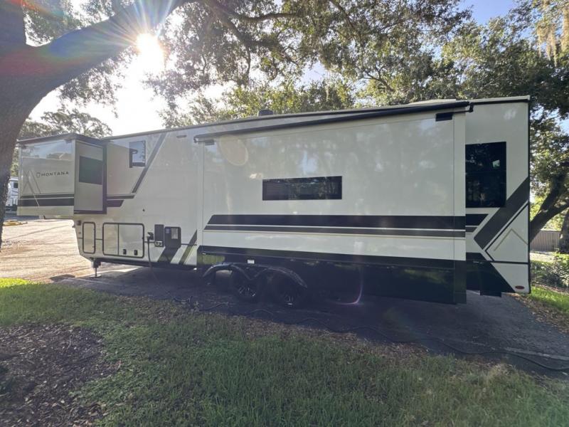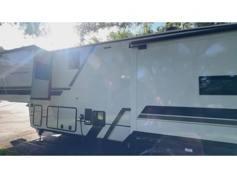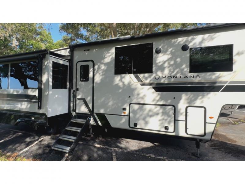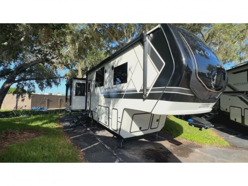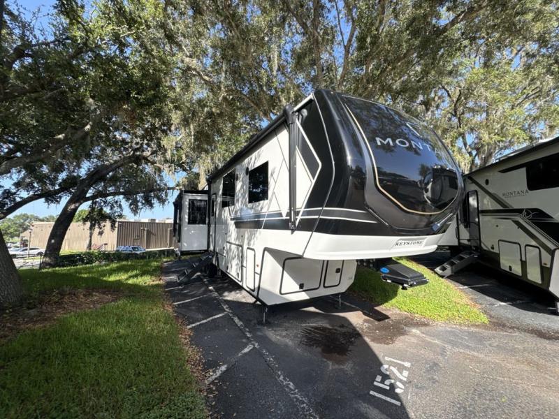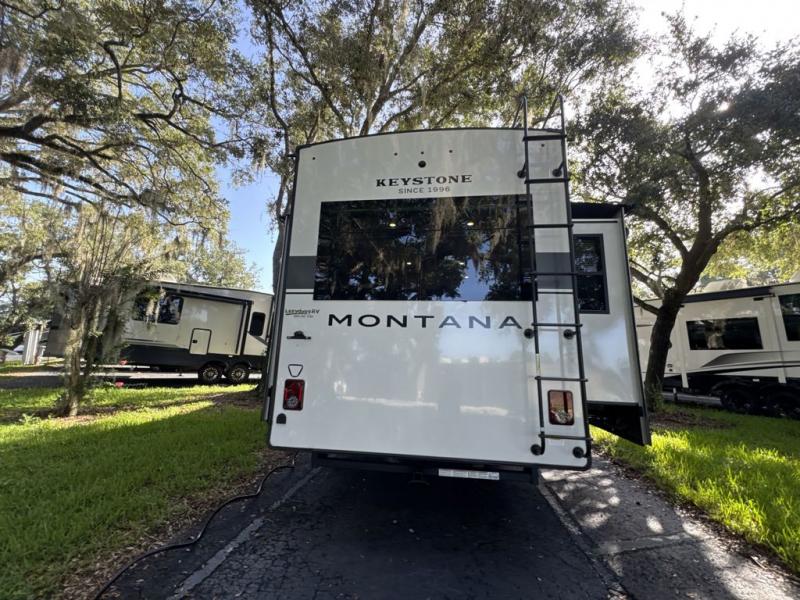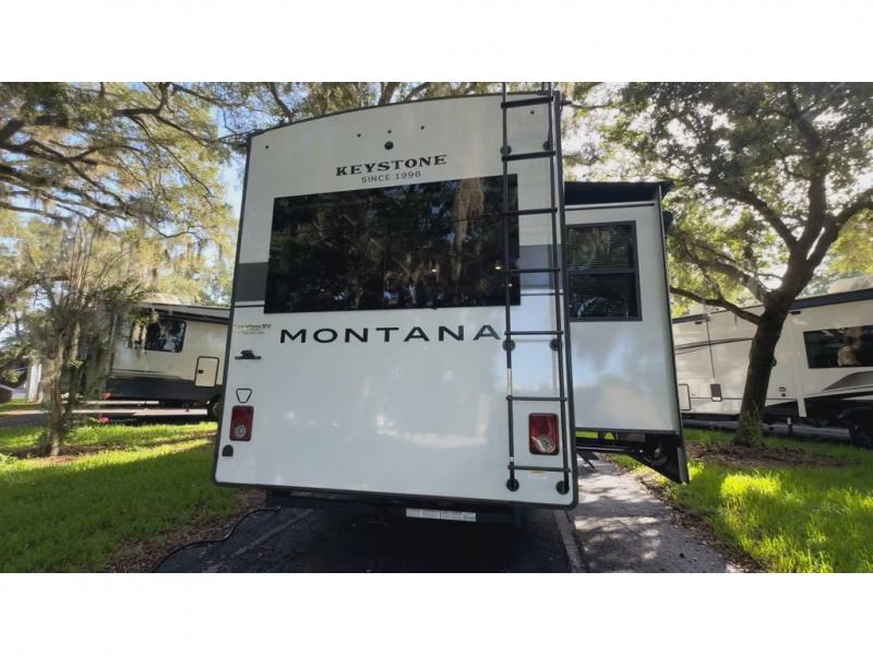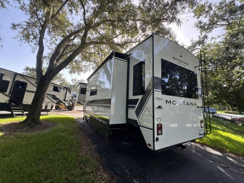 Enjoy luxury, innovation, and the outdoors in any one of Montana's finest fifth wheels. Each set the standard with exceptional features, and exciting factory installed options to provide you a great home on the road. Keystone's 12" I-beam chassis with z-frame technology provides a strong and durable foundation to your fifth wheel, and the four season living package will help extend your camping season. A few other construction features you will appreciate include a MORryde CRE3000 suspension, a fully walkable roof with an alpha seamless TPO membrane system, and 4k square frameless tinted safety glass windows. Each feature stylish interiors with two decor choices paired with beautiful hardwood cabinetry, Beauflor vinyl flooring throughout, central vacuum, plus a La-Z-Boy furniture package for all-around comfort!