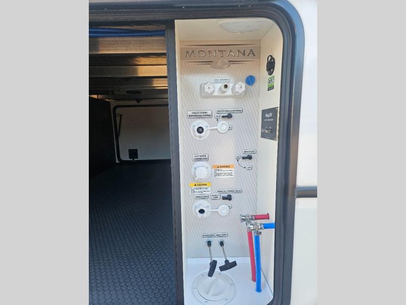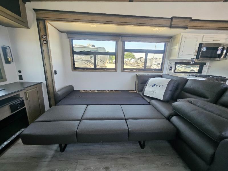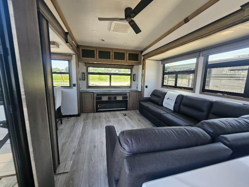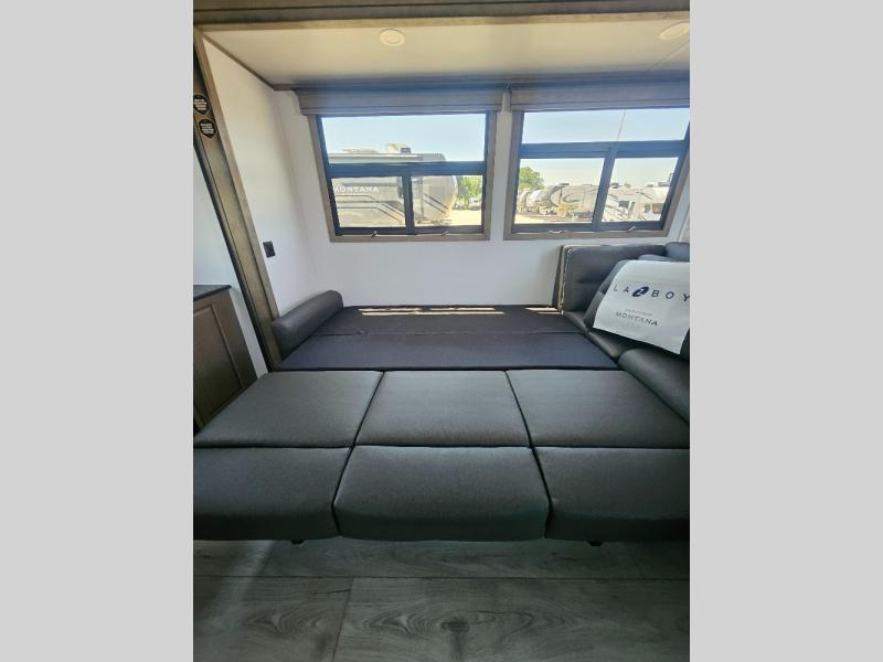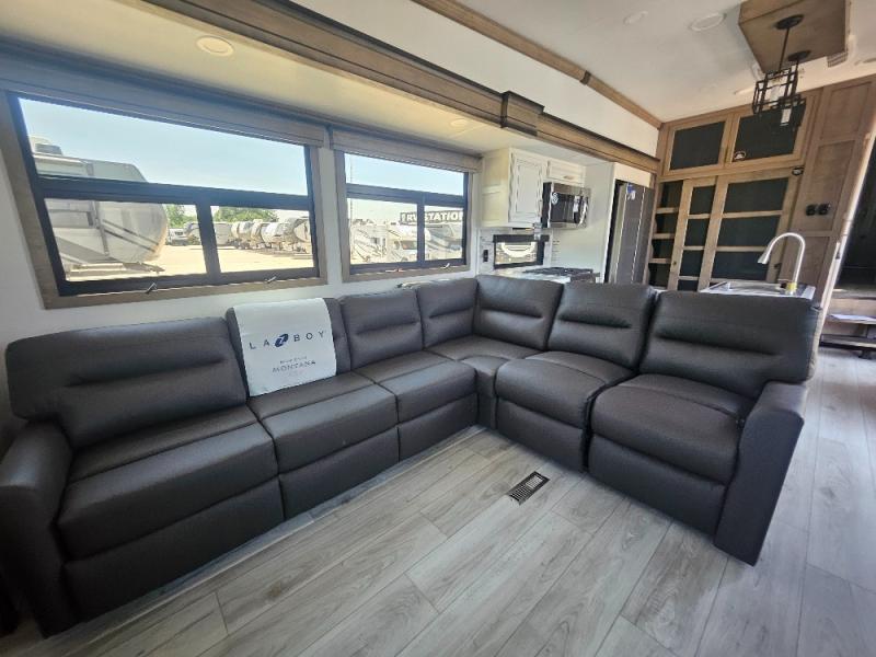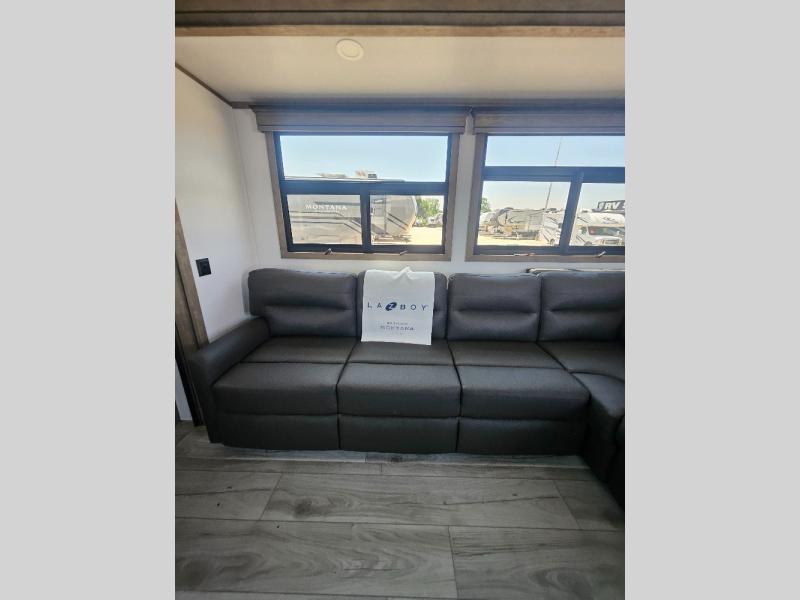 Enjoy luxury, innovation, and the outdoors in any one of Montana's finest fifth wheels. Each set the standard with exceptional features, and exciting factory installed options to provide you a great home on the road. Keystone's 12" I-beam chassis with z-frame technology provides a strong and durable foundation to your fifth wheel, and the four season living package will help extend your camping season. A few other construction features you will appreciate include a MORryde CRE3000 suspension, a fully walkable roof with an alpha seamless TPO membrane system, and 4k square frameless tinted safety glass windows. Each feature stylish interiors with two decor choices paired with beautiful hardwood cabinetry, Beauflor vinyl flooring throughout, central vacuum, plus a La-Z-Boy furniture package for all-around comfort!