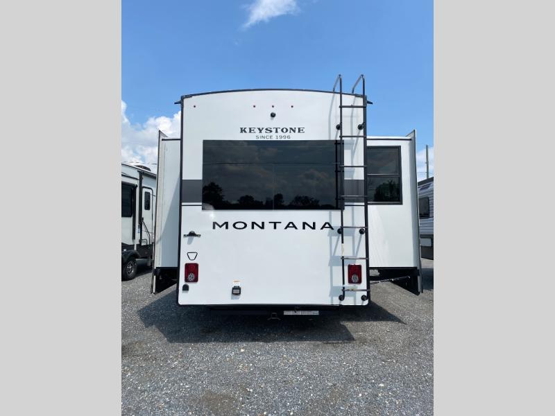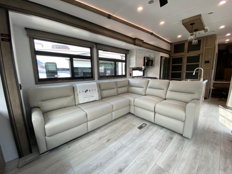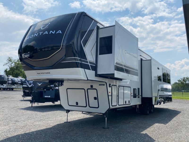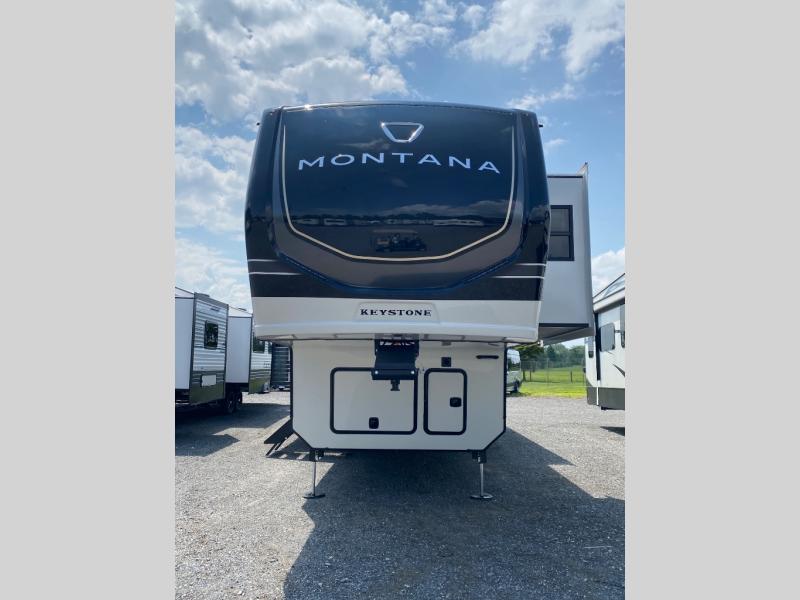 Enjoy luxury, innovation, and the outdoors in any one of Montana's finest fifth wheels. Each set the standard with exceptional features, and exciting factory installed options to provide you a great home on the road. Keystone's 12" I-beam chassis with z-frame technology provides a strong and durable foundation to your fifth wheel, and the four season living package will help extend your camping season. A few other construction features you will appreciate include a MORryde CRE3000 suspension, a fully walkable roof with an alpha seamless TPO membrane system, and 4k square frameless tinted safety glass windows. Each feature stylish interiors with two decor choices paired with beautiful hardwood cabinetry, Beauflor vinyl flooring throughout, central vacuum, plus a La-Z-Boy furniture package for all-around comfort!