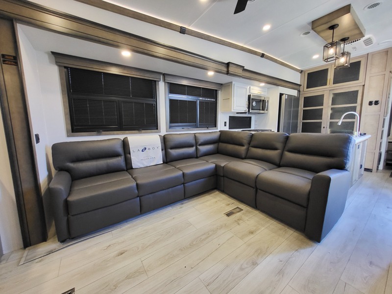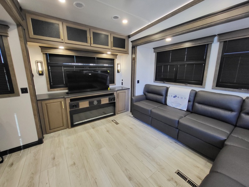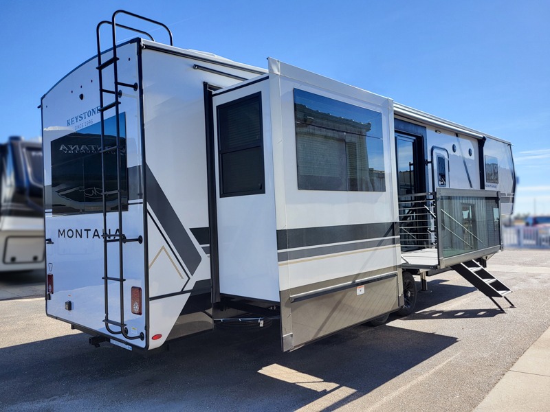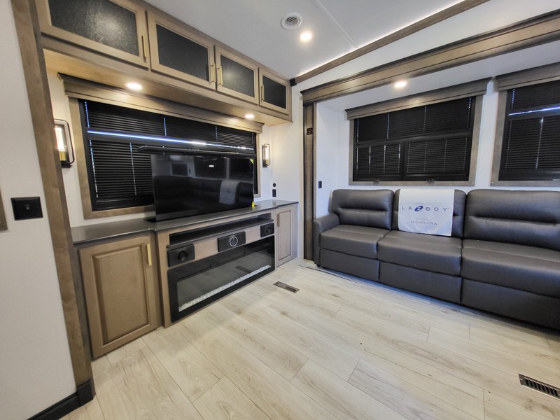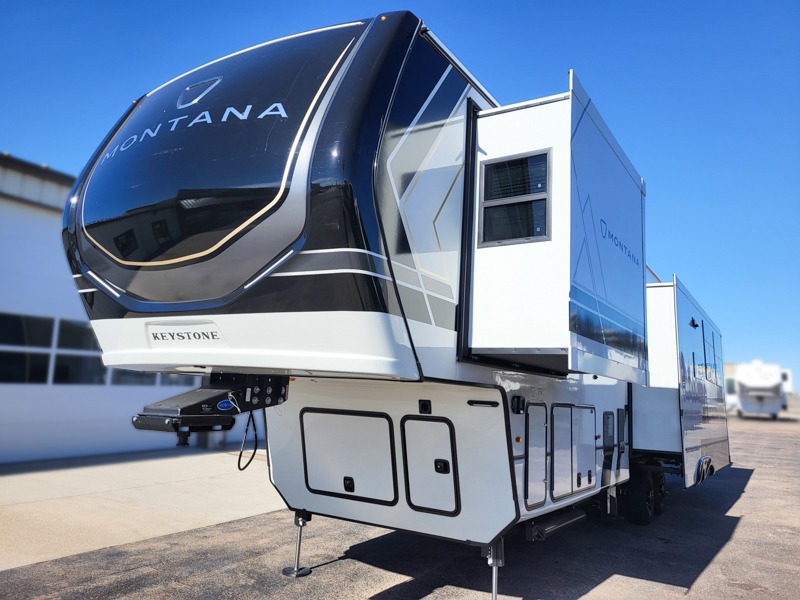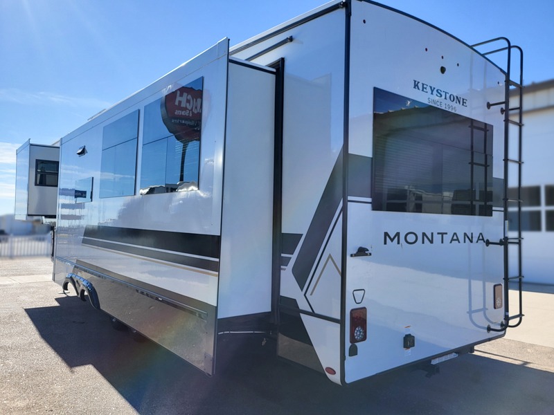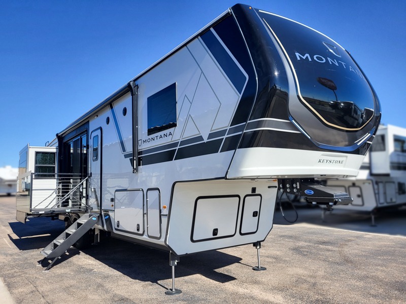 Enjoy luxury, innovation, and the outdoors in any one of Montana's finest fifth wheels. Each set the standard with exceptional features, and exciting factory installed options to provide you a great home on the road. Keystone's 12" I-beam chassis with z-frame technology provides a strong and durable foundation to your fifth wheel, and the four season living package will help extend your camping season. A few other construction features you will appreciate include a MORryde CRE3000 suspension, a fully walkable roof with an alpha seamless TPO membrane system, and 4k square frameless tinted safety glass windows. Each feature stylish interiors with two decor choices paired with beautiful hardwood cabinetry, Beauflor vinyl flooring throughout, central vacuum, plus a La-Z-Boy furniture package for all-around comfort!