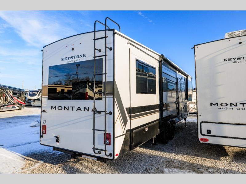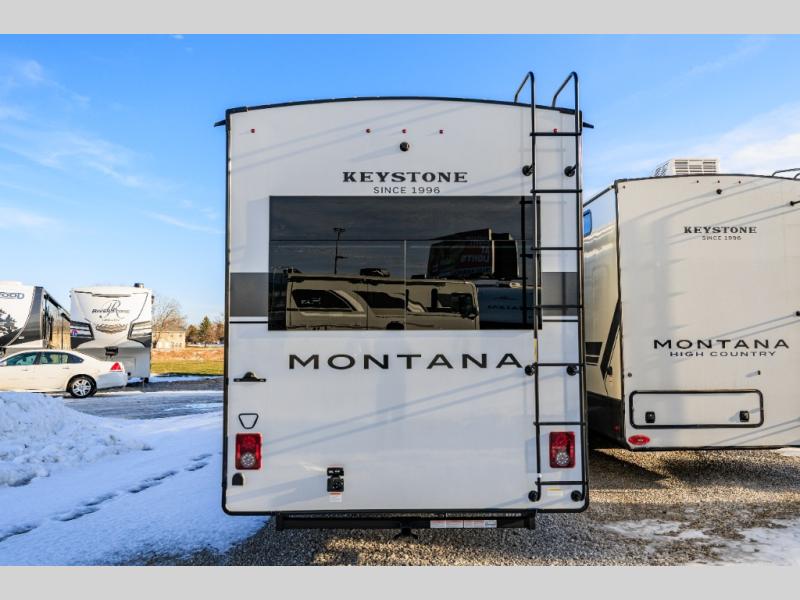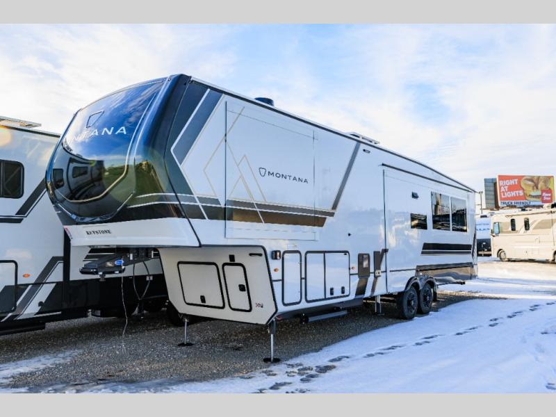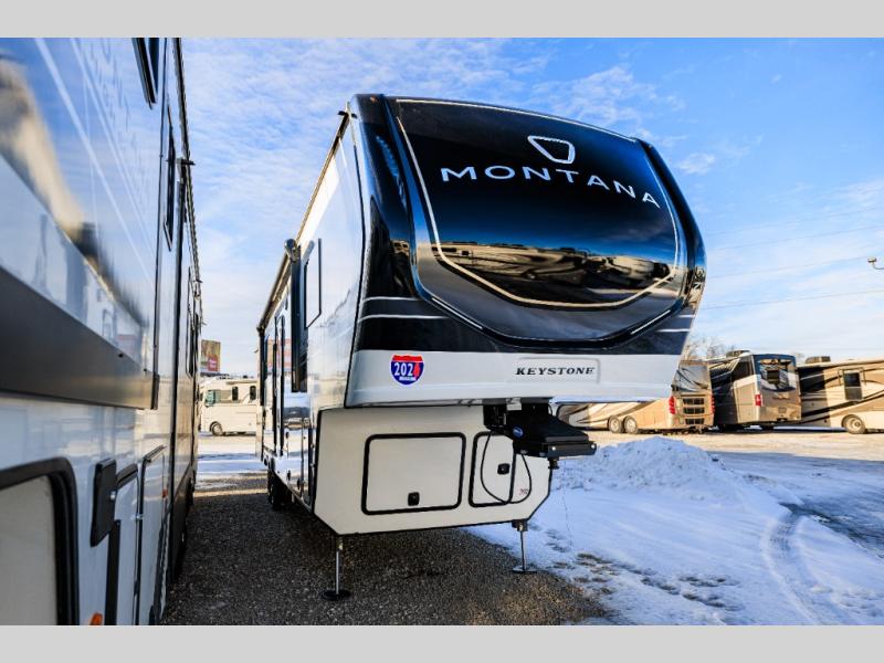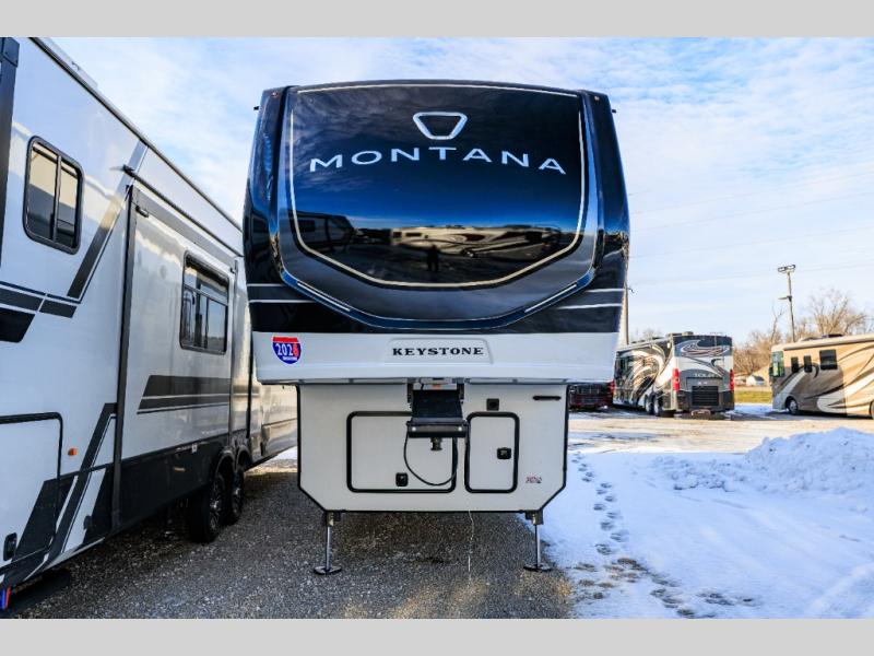 Enjoy luxury, innovation, and the outdoors in any one of Montana's finest fifth wheels. Each set the standard with exceptional features, and exciting factory installed options to provide you a great home on the road. Keystone's 12" I-beam chassis with z-frame technology provides a strong and durable foundation to your fifth wheel, and the four season living package will help extend your camping season. A few other construction features you will appreciate include a MORryde CRE3000 suspension, a fully walkable roof with an alpha seamless TPO membrane system, and 4k square frameless tinted safety glass windows. Each feature stylish interiors with two decor choices paired with beautiful hardwood cabinetry, Beauflor vinyl flooring throughout, central vacuum, plus a La-Z-Boy furniture package for all-around comfort!