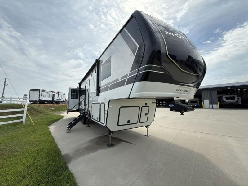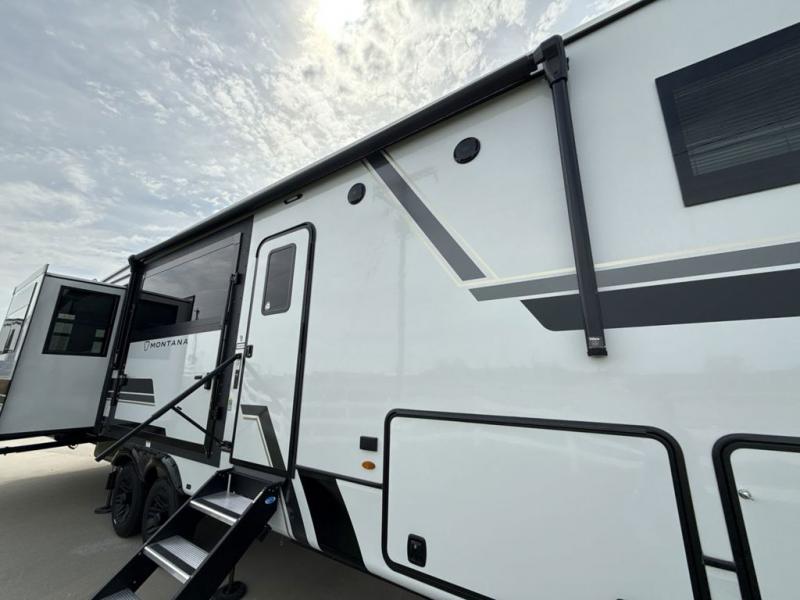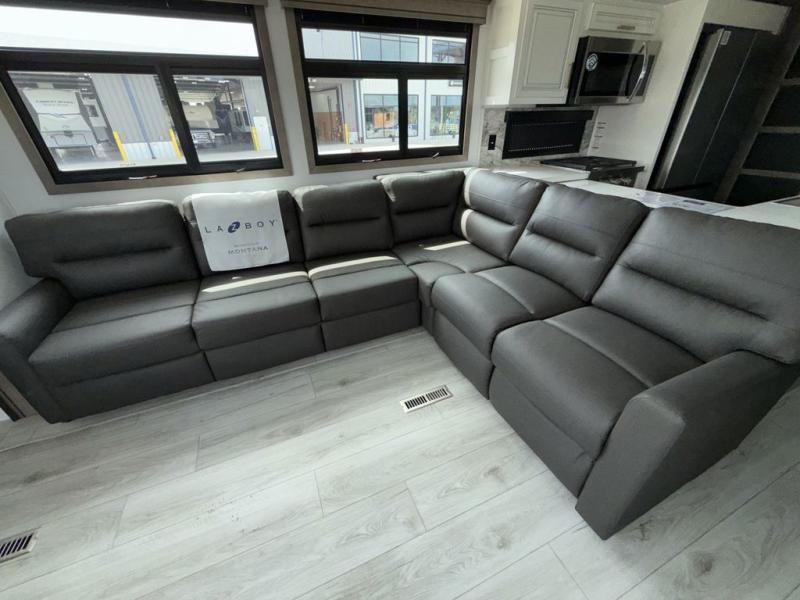 Enjoy luxury, innovation, and the outdoors in any one of Montana's finest fifth wheels. Each set the standard with exceptional features, and exciting factory installed options to provide you a great home on the road. Keystone's 12" I-beam chassis with z-frame technology provides a strong and durable foundation to your fifth wheel, and the four season living package will help extend your camping season. A few other construction features you will appreciate include a MORryde CRE3000 suspension, a fully walkable roof with an alpha seamless TPO membrane system, and 4k square frameless tinted safety glass windows. Each feature stylish interiors with two decor choices paired with beautiful hardwood cabinetry, Beauflor vinyl flooring throughout, central vacuum, plus a La-Z-Boy furniture package for all-around comfort!