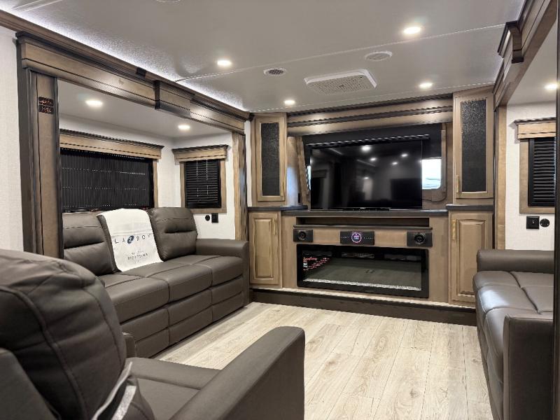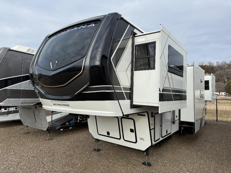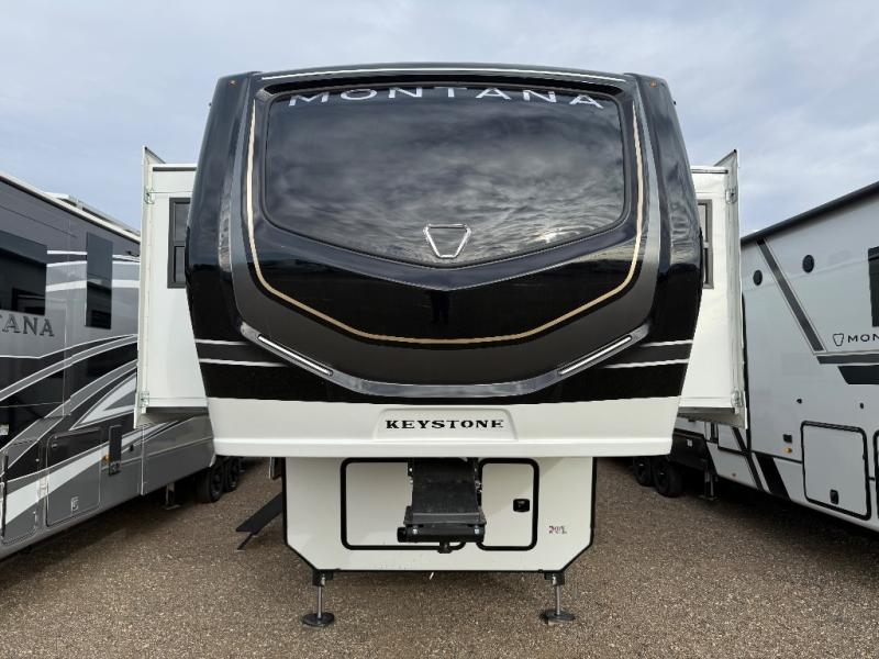 Enjoy luxury, innovation, and the outdoors in any one of Montana's finest fifth wheels. Each set the standard with exceptional features, and exciting factory installed options to provide you a great home on the road. Keystone's 12" I-beam chassis with z-frame technology provides a strong and durable foundation to your fifth wheel, and the four season living package will help extend your camping season. A few other construction features you will appreciate include a MORryde CRE3000 suspension, a fully walkable roof with an alpha seamless TPO membrane system, and 4k square frameless tinted safety glass windows. Each feature stylish interiors with two decor choices paired with beautiful hardwood cabinetry, Beauflor vinyl flooring throughout, central vacuum, plus a La-Z-Boy furniture package for all-around comfort!