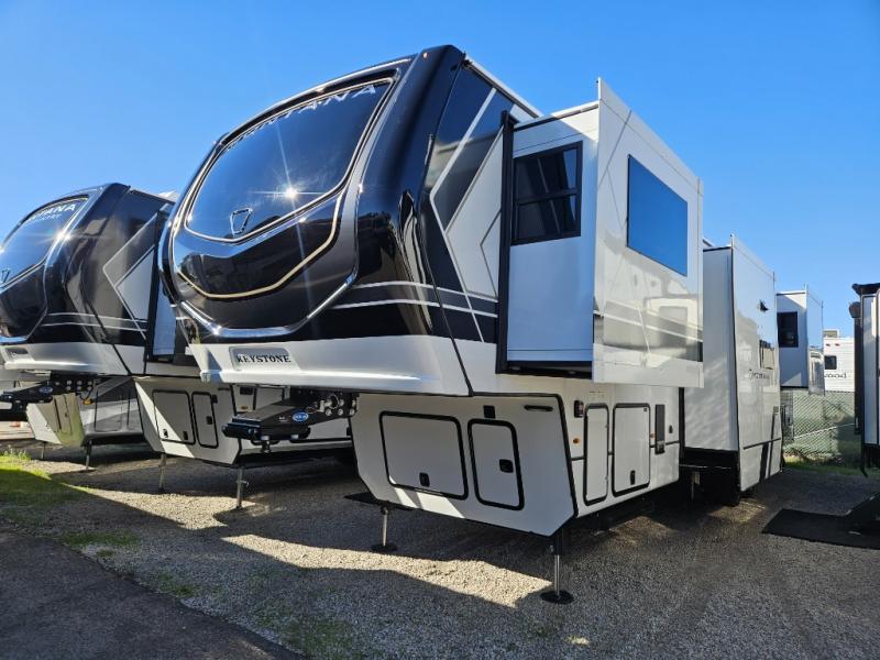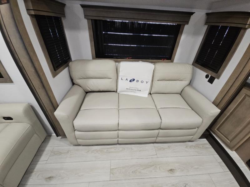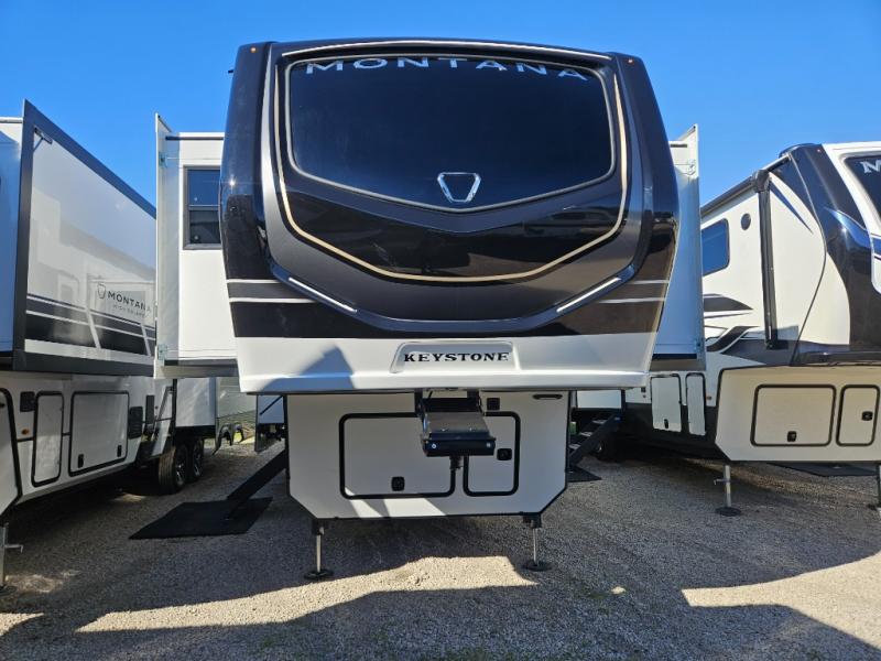 Enjoy luxury, innovation, and the outdoors in any one of Montana's finest fifth wheels. Each set the standard with exceptional features, and exciting factory installed options to provide you a great home on the road. Keystone's 12" I-beam chassis with z-frame technology provides a strong and durable foundation to your fifth wheel, and the four season living package will help extend your camping season. A few other construction features you will appreciate include a MORryde CRE3000 suspension, a fully walkable roof with an alpha seamless TPO membrane system, and 4k square frameless tinted safety glass windows. Each feature stylish interiors with two decor choices paired with beautiful hardwood cabinetry, Beauflor vinyl flooring throughout, central vacuum, plus a La-Z-Boy furniture package for all-around comfort!