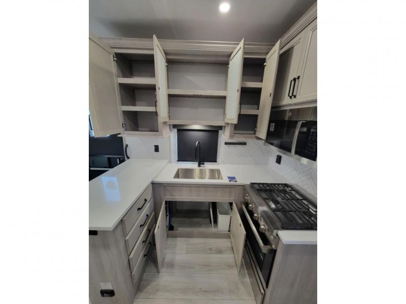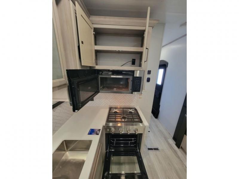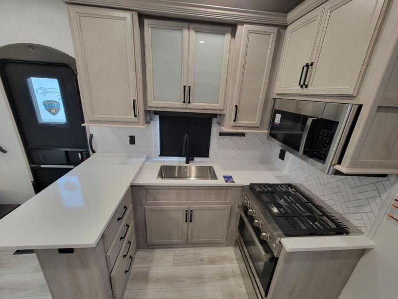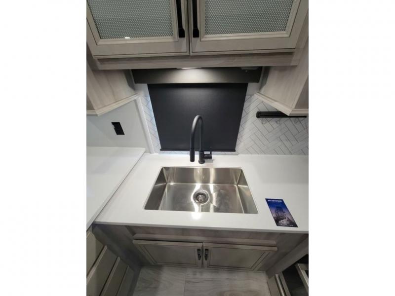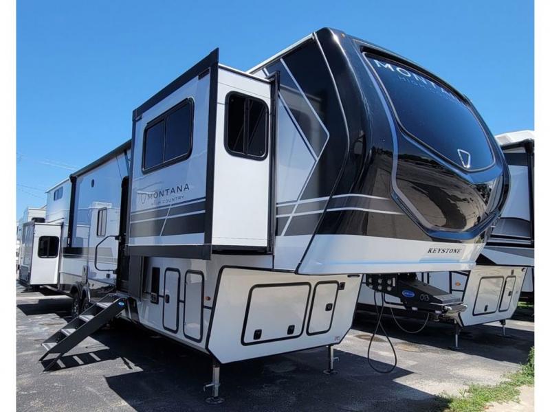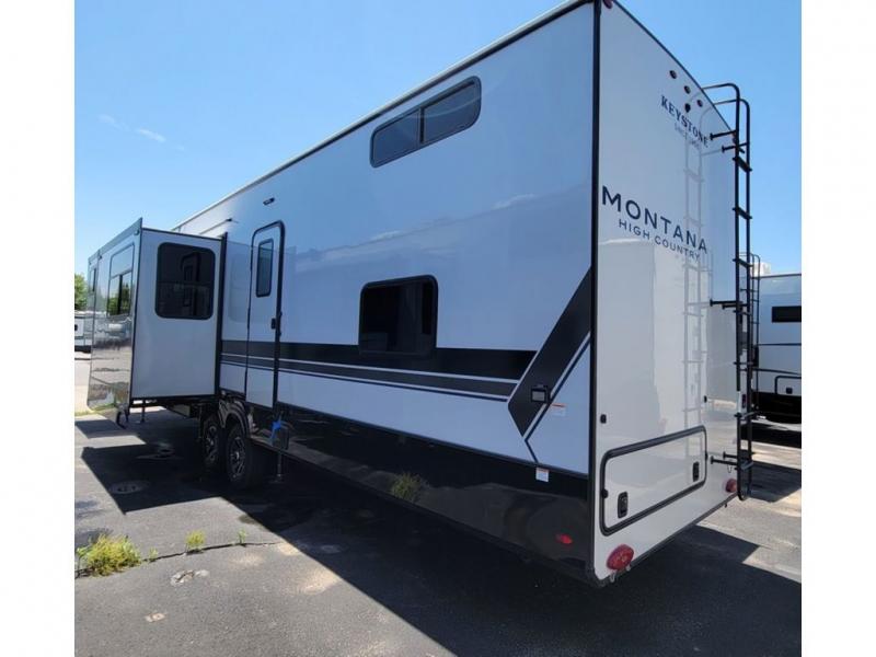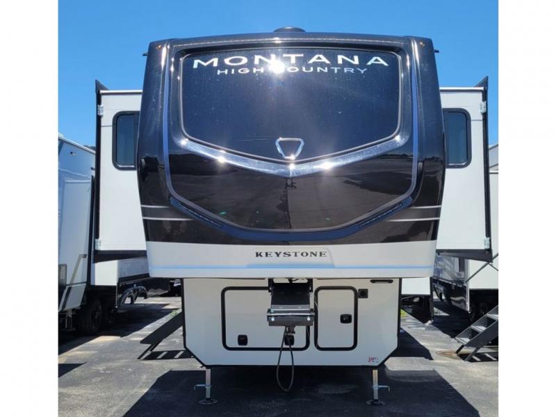 Live the high life with a Keystone Montana High Country fifth wheel! You'll have all the luxury you need with these units. They come with a MaxTurn™ front cap with KeyShield™ automotive-grade paint, a fully walkable roof with Alpha seamless TPO membrane system, and an insulated underbelly with forced hot air and electric tank heaters. The MORryde CRE3000 suspension with wet bolts helps provide a smooth tow, and the Ground Control® four-point electric auto-leveling with hitch memory will make set-up quite easy. The interior is elegantly appointed with the Thomas Payne Collection furniture, hardwood decorative slide-out fascia, Beauflor® vinyl throughout, accent crown molding, and premium solid surface kitchen countertops.