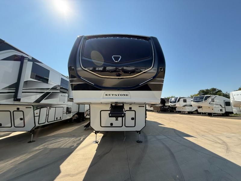 Enjoy luxury, innovation, and the outdoors in any one of Montana's finest fifth wheels. Each set the standard with exceptional features, and exciting factory installed options to provide you a great home on the road. Keystone's 12" I-beam chassis with z-frame technology provides a strong and durable foundation to your fifth wheel, and the four season living package will help extend your camping season. A few other construction features you will appreciate include a MORryde CRE3000 suspension, a fully walkable roof with an alpha seamless TPO membrane system, and 4k square frameless tinted safety glass windows. Each feature stylish interiors with two decor choices paired with beautiful hardwood cabinetry, Beauflor vinyl flooring throughout, central vacuum, plus a La-Z-Boy furniture package for all-around comfort!