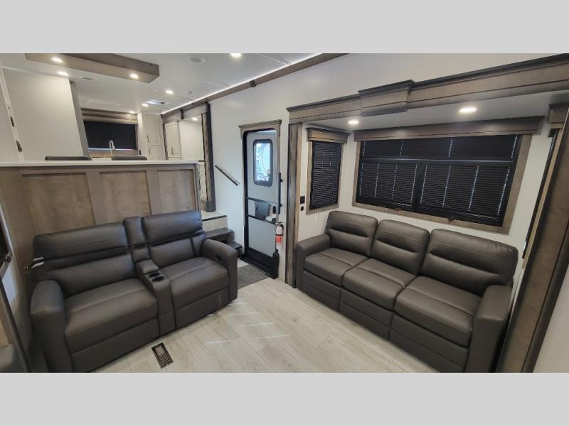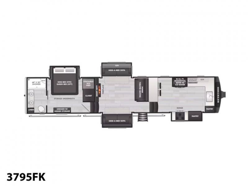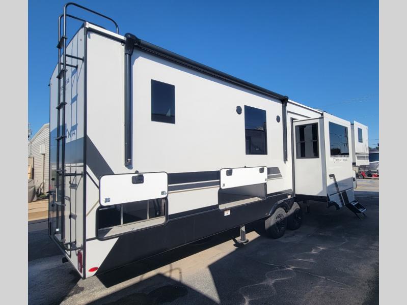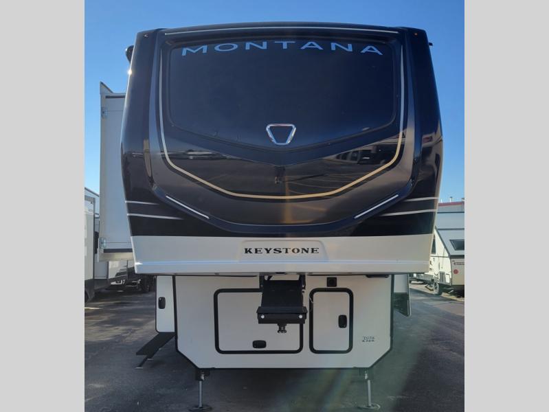 Enjoy luxury, innovation, and the outdoors in any one of Montana's finest fifth wheels. Each set the standard with exceptional features, and exciting factory installed options to provide you a great home on the road. Keystone's 12" I-beam chassis with z-frame technology provides a strong and durable foundation to your fifth wheel, and the four season living package will help extend your camping season. A few other construction features you will appreciate include a MORryde CRE3000 suspension, a fully walkable roof with an alpha seamless TPO membrane system, and 4k square frameless tinted safety glass windows. Each feature stylish interiors with two decor choices paired with beautiful hardwood cabinetry, Beauflor vinyl flooring throughout, central vacuum, plus a La-Z-Boy furniture package for all-around comfort!