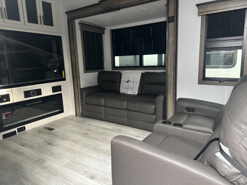 Enjoy luxury, innovation, and the outdoors in any one of Montana's finest fifth wheels. Each set the standard with exceptional features, and exciting factory installed options to provide you a great home on the road. Keystone's 12" I-beam chassis with z-frame technology provides a strong and durable foundation to your fifth wheel, and the four season living package will help extend your camping season. A few other construction features you will appreciate include a MORryde CRE3000 suspension, a fully walkable roof with an alpha seamless TPO membrane system, and 4k square frameless tinted safety glass windows. Each feature stylish interiors with two decor choices paired with beautiful hardwood cabinetry, Beauflor vinyl flooring throughout, central vacuum, plus a La-Z-Boy furniture package for all-around comfort!