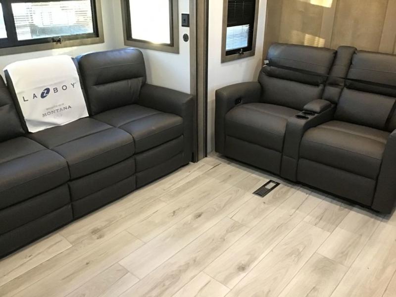 Enjoy luxury, innovation, and the outdoors in any one of Montana's finest fifth wheels. Each set the standard with exceptional features, and exciting factory installed options to provide you a great home on the road. Keystone's 12" I-beam chassis with z-frame technology provides a strong and durable foundation to your fifth wheel, and the four season living package will help extend your camping season. A few other construction features you will appreciate include a MORryde CRE3000 suspension, a fully walkable roof with an alpha seamless TPO membrane system, and 4k square frameless tinted safety glass windows. Each feature stylish interiors with two decor choices paired with beautiful hardwood cabinetry, Beauflor vinyl flooring throughout, central vacuum, plus a La-Z-Boy furniture package for all-around comfort!