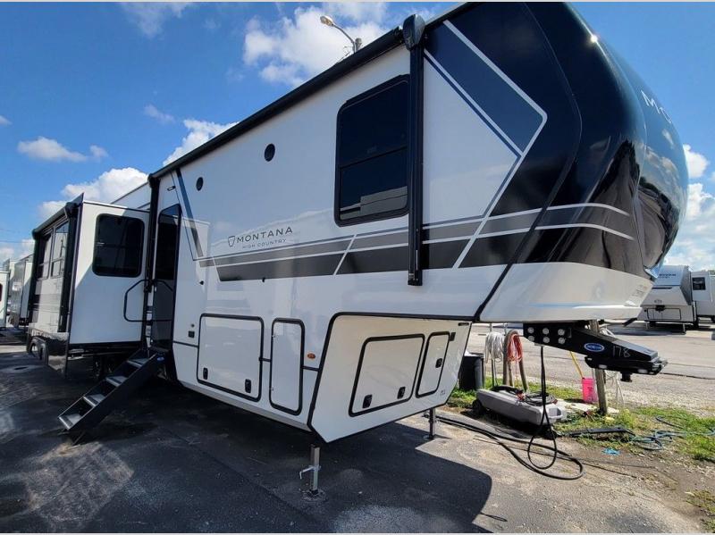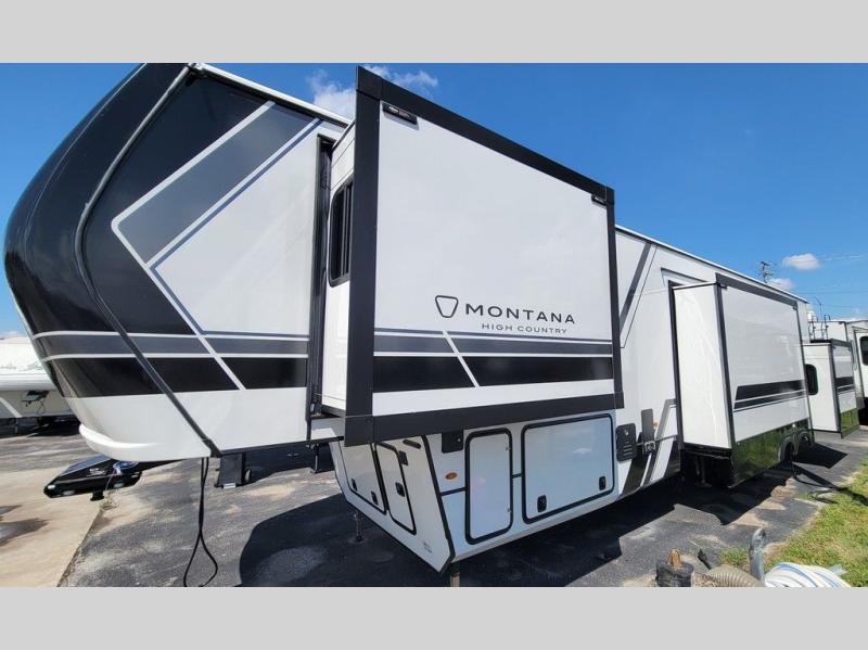 Live the high life with a Keystone Montana High Country fifth wheel! You'll have all the luxury you need with these units. They come with a MaxTurn™ front cap with KeyShield™ automotive-grade paint, a fully walkable roof with Alpha seamless TPO membrane system, and an insulated underbelly with forced hot air and electric tank heaters. The MORryde CRE3000 suspension with wet bolts helps provide a smooth tow, and the Ground Control® four-point electric auto-leveling with hitch memory will make set-up quite easy. The interior is elegantly appointed with the Thomas Payne Collection furniture, hardwood decorative slide-out fascia, Beauflor® vinyl throughout, accent crown molding, and premium solid surface kitchen countertops.