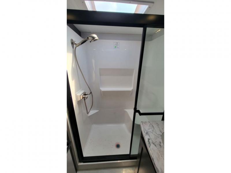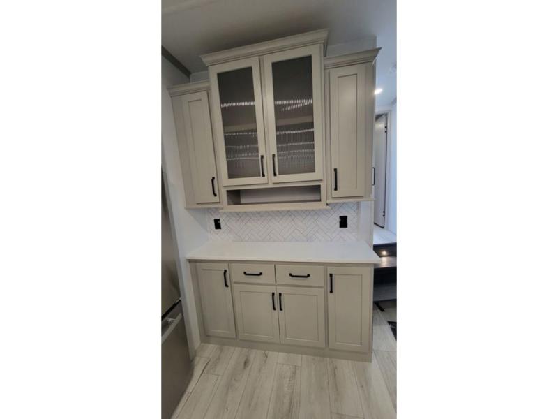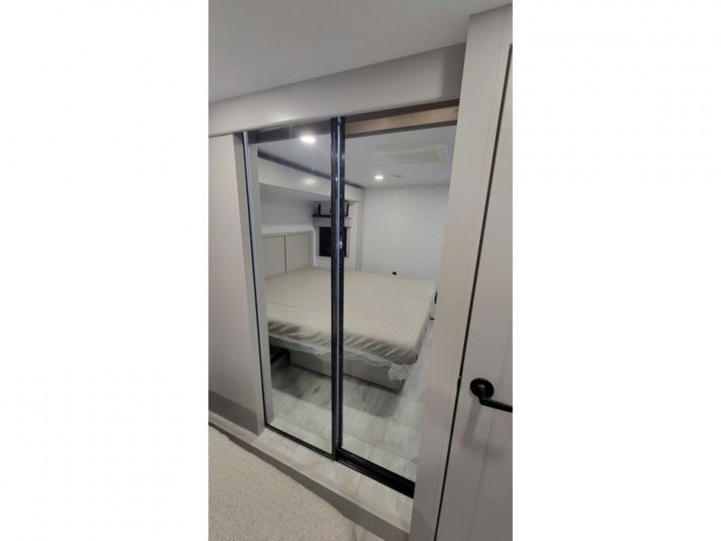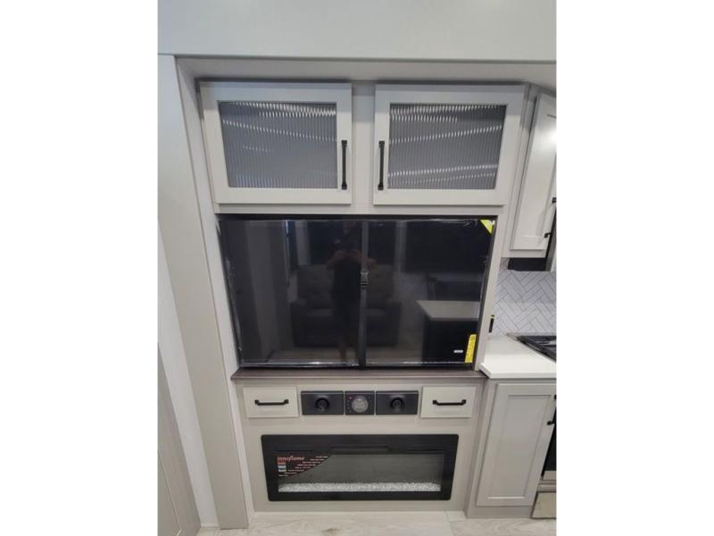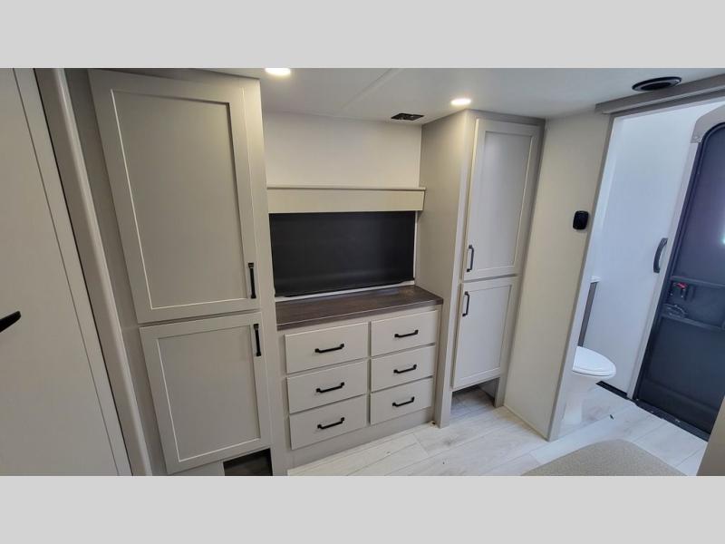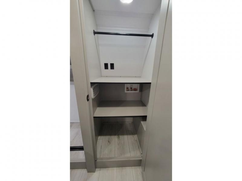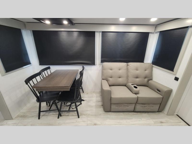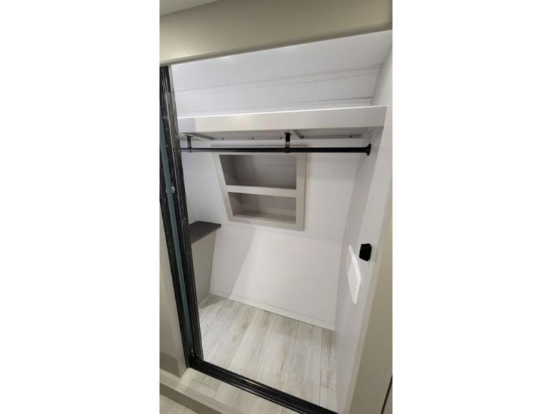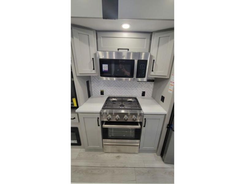 Two full bathrooms and two private bedrooms make this fifth wheel perfect for camping with friends and family. The front bedroom includes a king bed with a queen bed option, a large front wardrobe, plus stackable washer and dryer prep. The rear master bedroom has two closets plus a dresser and underbed storage, plus its own full bath with an exterior entry door for convenience. There is even a loft above the rear bedroom for even more sleeping space! Everyone can meet in the main living area/kitchen to relax on the power theater seat as the chef cooks dinner, and you can watch a show on the Smart HDTV to pass the time. The kitchen island will provide more counter space, along with the hutch that includes overhead cabinets as well. Don't let this luxury fifth wheel slip away!