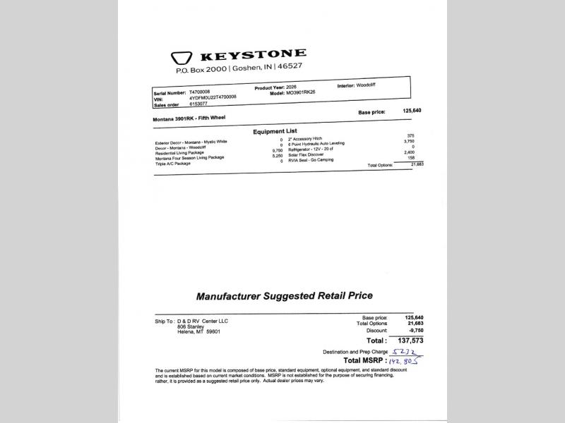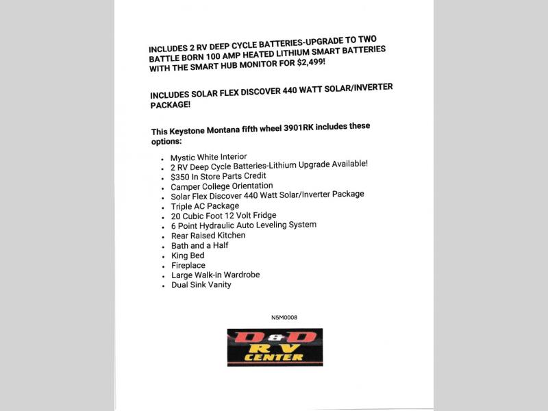 This Keystone Montana fifth wheel 3901RK includes these options: