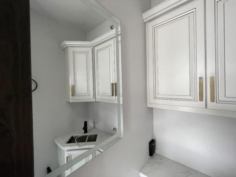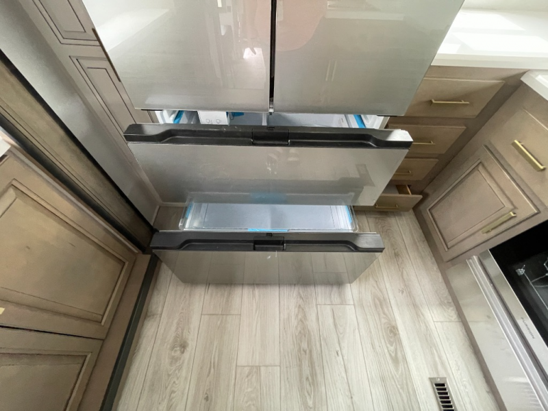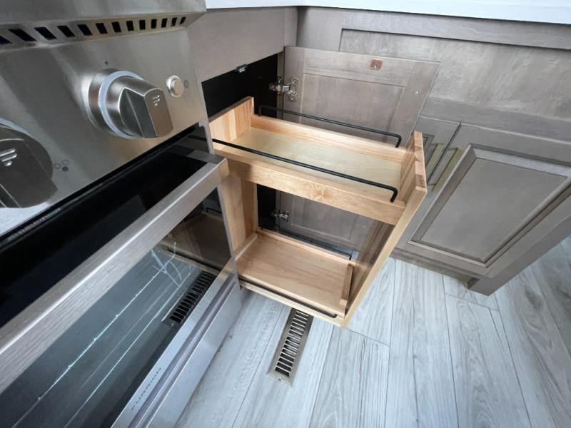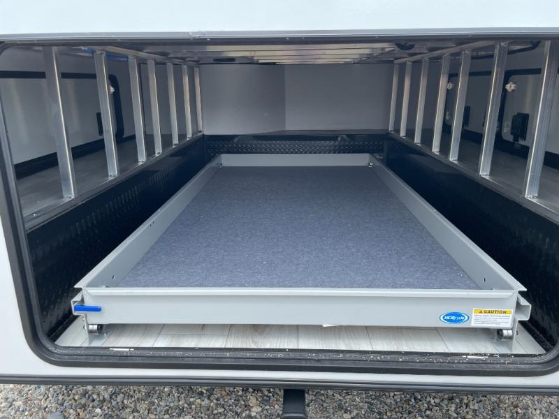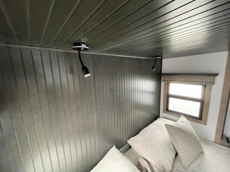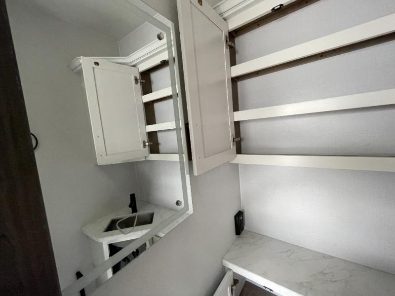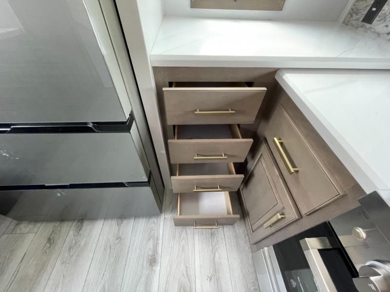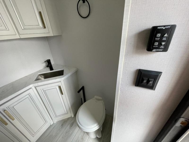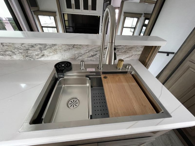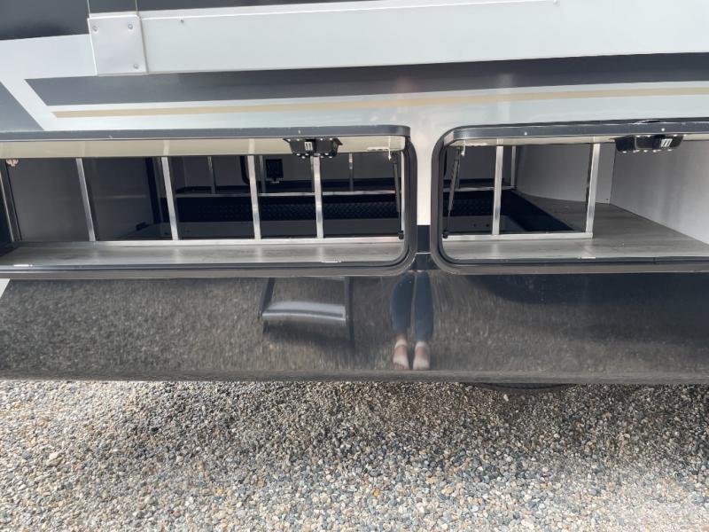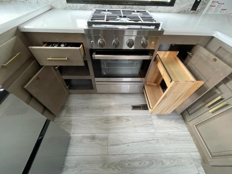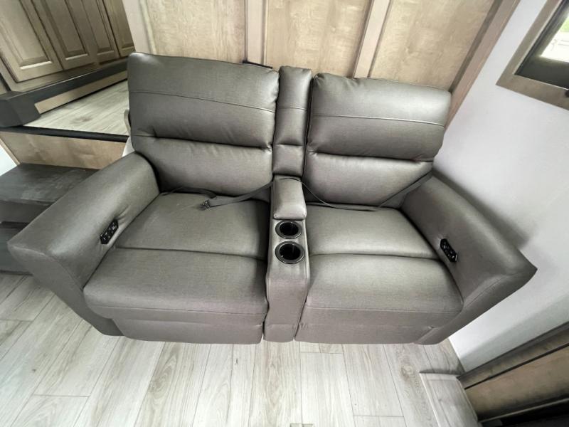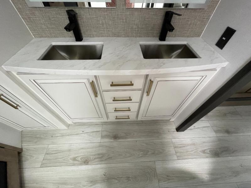 The perfect RV when you like to take "home"' with you when you travel! This Montana fifth wheel gives you the space you want and it feels like home with plenty of features to love and keep you comfortable when you are out enjoying your adventures. Five slides in total give each space plenty of room, the raised rear kitchen has everything you need to cook up meals and snacks just like at home. An 18 cu. ft. residential refrigerator with an ice maker, convection microwave oven and large sink, plus pantry space will make any chef happy. The mid-coach space just inside the door features a living room and half bath for convenience. There is also a dinette with storage within the roadside slide. Step up in front through a sliding barn door to a double slide space with a king bed and dresser. A second sliding barn door leads into the front spacious master bath featuring dual sinks, a 48" x 30" shower, and a large walk-in wardrobe with washer and dryer prep!