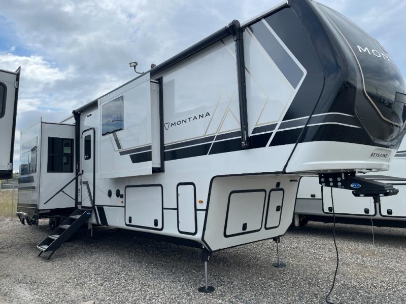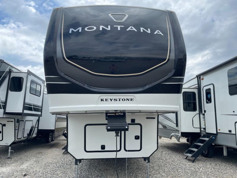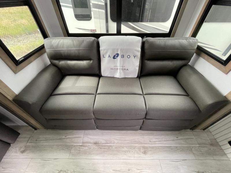 Enjoy luxury, innovation, and the outdoors in any one of Montana's finest fifth wheels. Each set the standard with exceptional features, and exciting factory installed options to provide you a great home on the road. Keystone's exclusive 12" I-beam chassis with z-frame technology has been reengineered to be stronger, lighter and built for "the long haul". A few other construction features you will appreciate include a Road Armor suspension, 2" thick, dual-layered lauan high gloss fiberglass sidewalls, a MaxTurn front cap with KeyShield automotive-grade paint, and a fully walkable roof with an Alpha seamless TPO membrane system. Each feature stylish interiors with two decor choices paired with beautiful hardwood cabinetry, vinyl flooring throughout, central vacuum, plus a La-Z-Boy furniture package for all-around comfort!