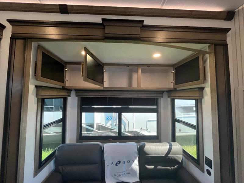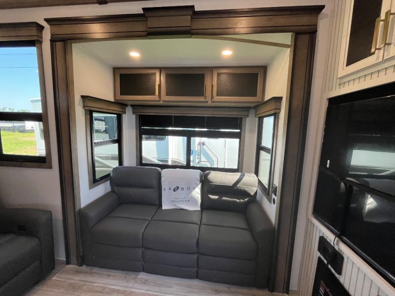Enjoy luxury, innovation, and the outdoors in any one of Montana's finest fifth wheels. Each set the standard with exceptional features, and exciting factory installed options to provide you a great home on the road. Keystone's 12" I-beam chassis with z-frame technology provides a strong and durable foundation to your fifth wheel, and the four season living package will help extend your camping season. A few other construction features you will appreciate include a MORryde CRE3000 suspension, a fully walkable roof with an alpha seamless TPO membrane system, and 4k square frameless tinted safety glass windows. Each feature stylish interiors with two decor choices paired with beautiful hardwood cabinetry, Beauflor vinyl flooring throughout, central vacuum, plus a La-Z-Boy furniture package for all-around comfort!