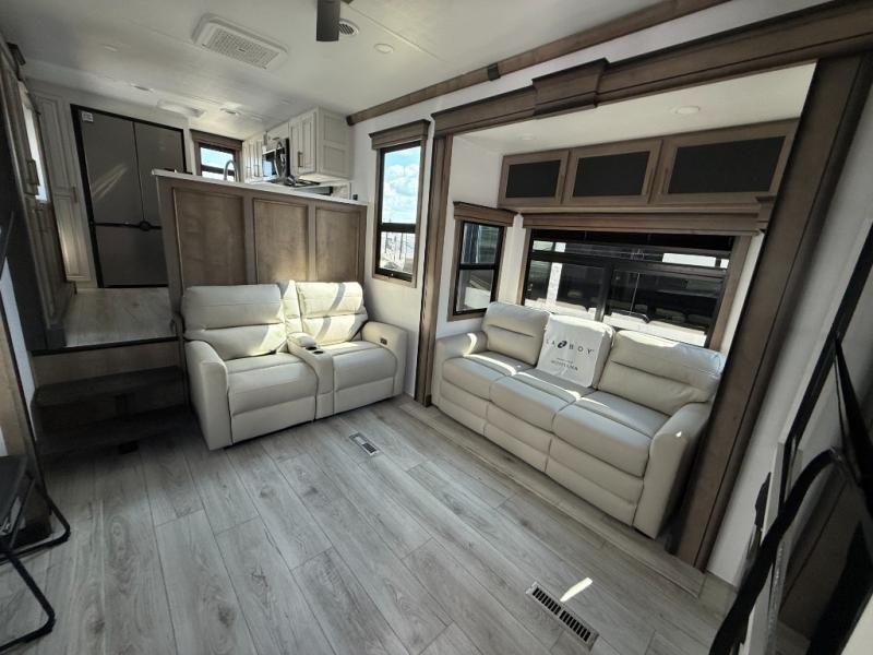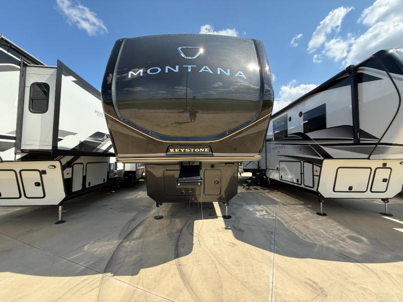 Enjoy luxury, innovation, and the outdoors in any one of Montana's finest fifth wheels. Each set the standard with exceptional features, and exciting factory installed options to provide you a great home on the road. Keystone's 12" I-beam chassis with z-frame technology provides a strong and durable foundation to your fifth wheel, and the four season living package will help extend your camping season. A few other construction features you will appreciate include a MORryde CRE3000 suspension, a fully walkable roof with an alpha seamless TPO membrane system, and 4k square frameless tinted safety glass windows. Each feature stylish interiors with two decor choices paired with beautiful hardwood cabinetry, Beauflor vinyl flooring throughout, central vacuum, plus a La-Z-Boy furniture package for all-around comfort!