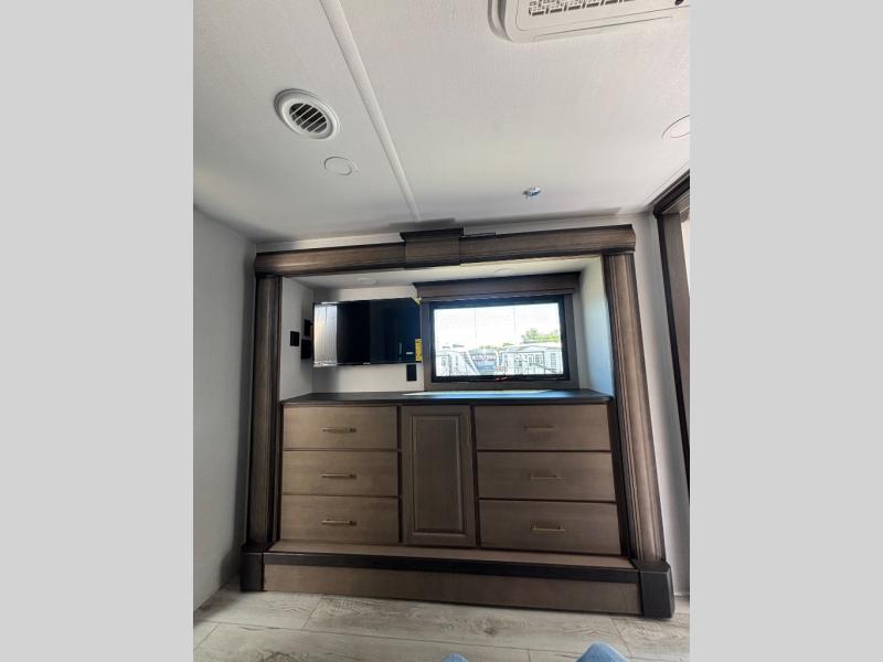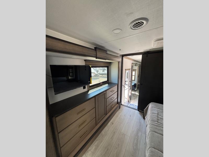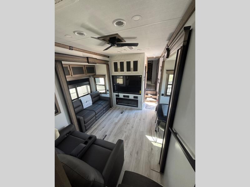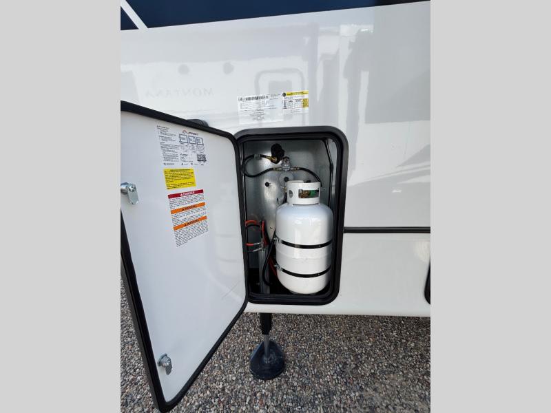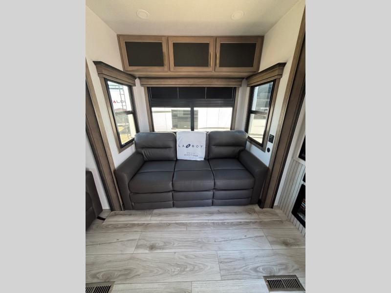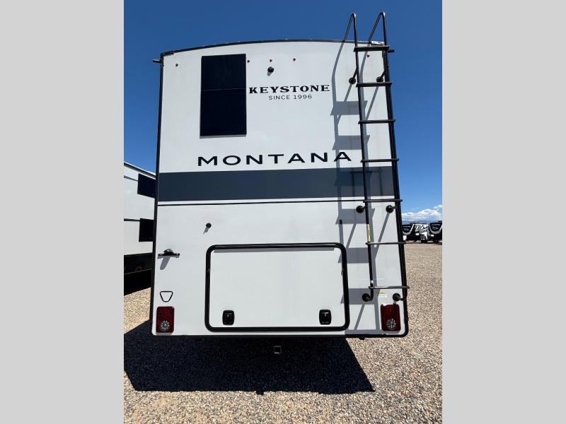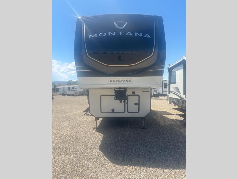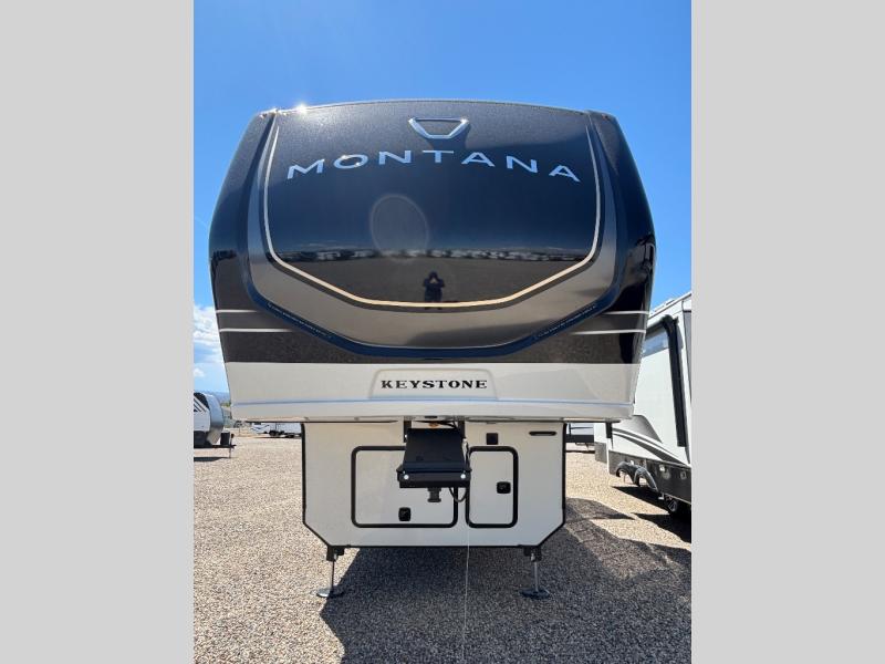 Enjoy luxury, innovation, and the outdoors in any one of Montana's finest fifth wheels. Each set the standard with exceptional features, and exciting factory installed options to provide you a great home on the road. Keystone's 12" I-beam chassis with z-frame technology provides a strong and durable foundation to your fifth wheel, and the four season living package will help extend your camping season. A few other construction features you will appreciate include a MORryde CRE3000 suspension, a fully walkable roof with an alpha seamless TPO membrane system, and 4k square frameless tinted safety glass windows. Each feature stylish interiors with two decor choices paired with beautiful hardwood cabinetry, Beauflor vinyl flooring throughout, central vacuum, plus a La-Z-Boy furniture package for all-around comfort!