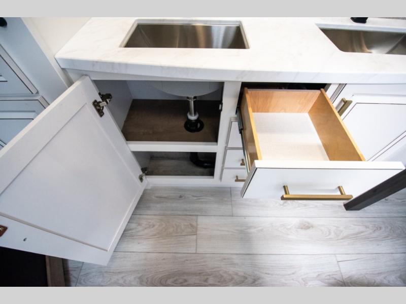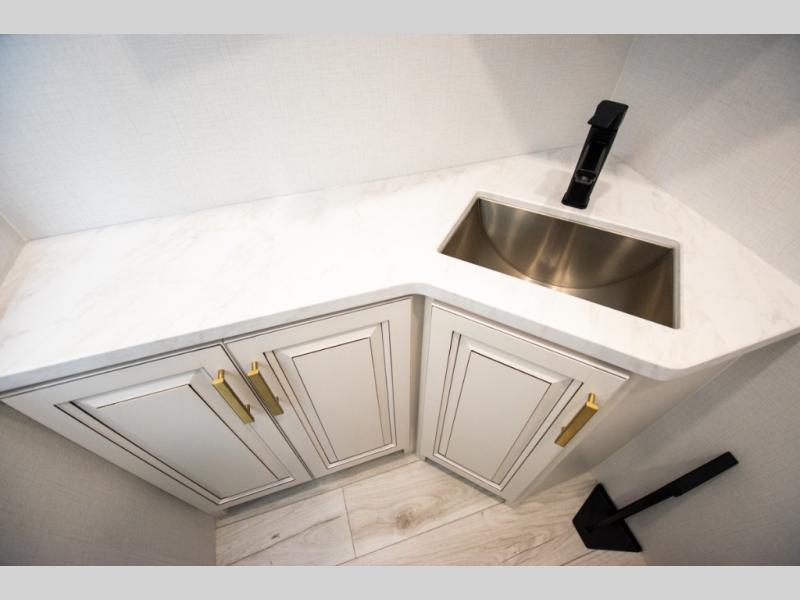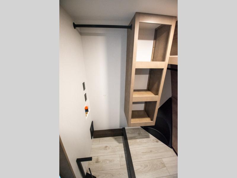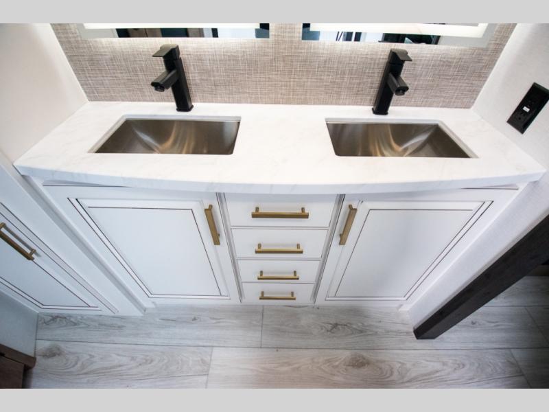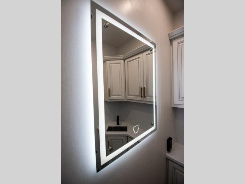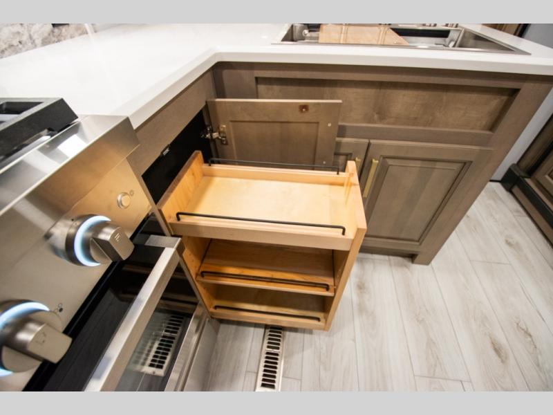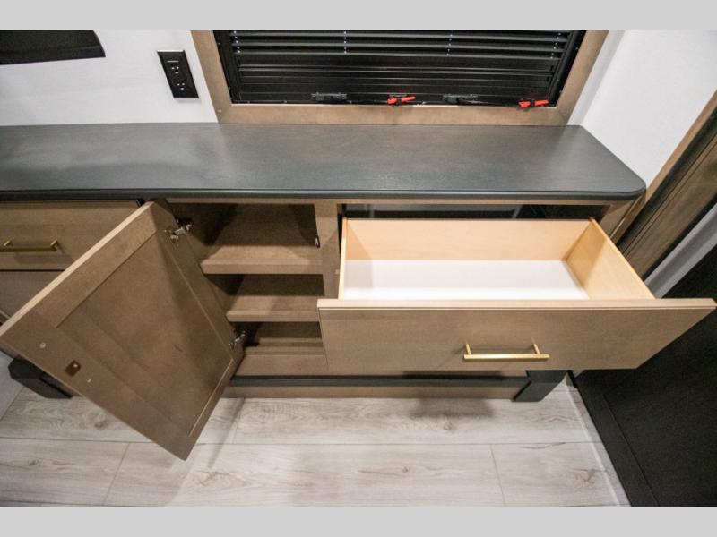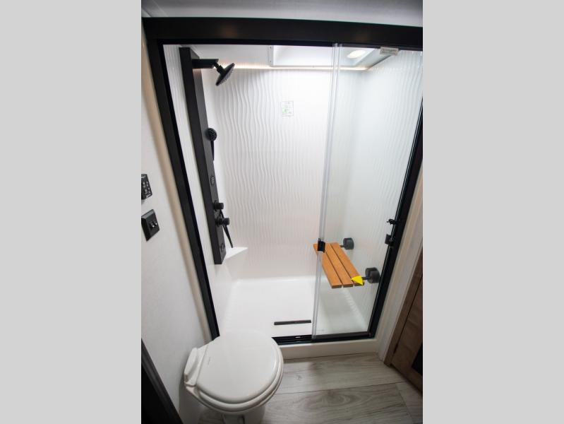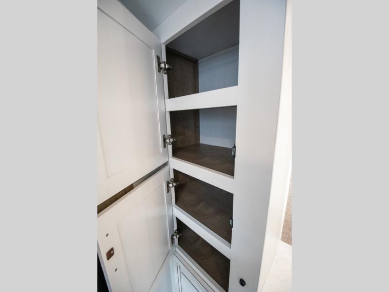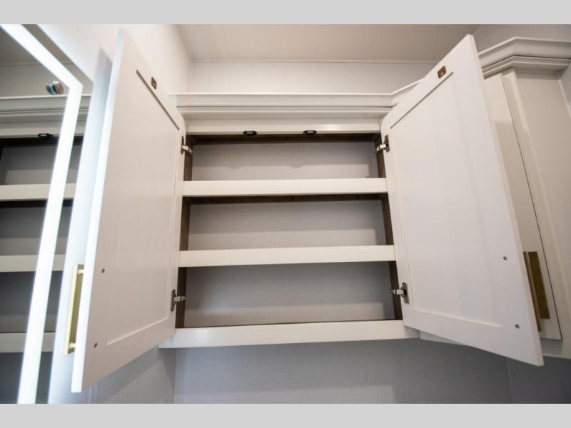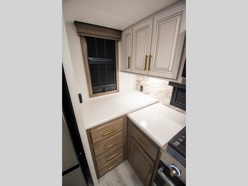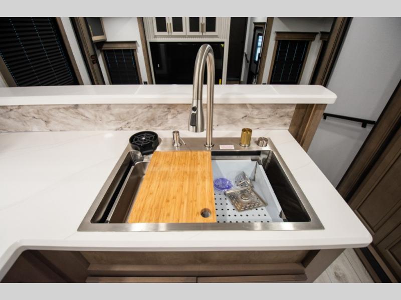 The perfect RV when you like to take "home"' with you when you travel! This Montana fifth wheel gives you the space you want and it feels like home with plenty of features to love and keep you comfortable when you are out enjoying your adventures. Five slides in total give each space plenty of room, the raised rear kitchen has everything you need to cook up meals and snacks just like at home. An 18 cu. ft. residential refrigerator with an ice maker, convection microwave oven and large sink, plus pantry space will make any chef happy. The mid-coach space just inside the door features a living room and half bath for convenience. There is also a pivot dinette within the roadside slide. Step up in front through a sliding barn door to a double slide space with a king bed and dresser. A second sliding door leads into the front spacious master bath featuring dual sinks, a 48" x 30" shower, and a large walk-in wardrobe with washer and dryer prep!