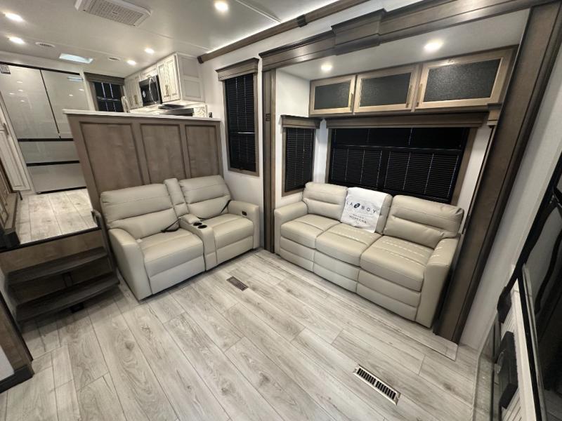 Enjoy luxury, innovation, and the outdoors in any one of Montana's finest fifth wheels. Each set the standard with exceptional features, and exciting factory installed options to provide you a great home on the road. Keystone's 12" I-beam chassis with z-frame technology provides a strong and durable foundation to your fifth wheel, and the four season living package will help extend your camping season. A few other construction features you will appreciate include a MORryde CRE3000 suspension, a fully walkable roof with an alpha seamless TPO membrane system, and 4k square frameless tinted safety glass windows. Each feature stylish interiors with two decor choices paired with beautiful hardwood cabinetry, Beauflor vinyl flooring throughout, central vacuum, plus a La-Z-Boy furniture package for all-around comfort!