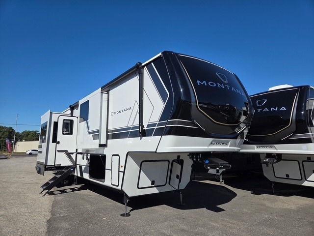 Enjoy luxury, innovation, and the outdoors in any one of Montana's finest fifth wheels. Each set the standard with exceptional features, and exciting factory installed options to provide you a great home on the road. Keystone's 12" I-beam chassis with z-frame technology provides a strong and durable foundation to your fifth wheel, and the four season living package will help extend your camping season. A few other construction features you will appreciate include a MORryde CRE3000 suspension, a fully walkable roof with an alpha seamless TPO membrane system, and 4k square frameless tinted safety glass windows. Each feature stylish interiors with two decor choices paired with beautiful hardwood cabinetry, Beauflor vinyl flooring throughout, central vacuum, plus a La-Z-Boy furniture package for all-around comfort!