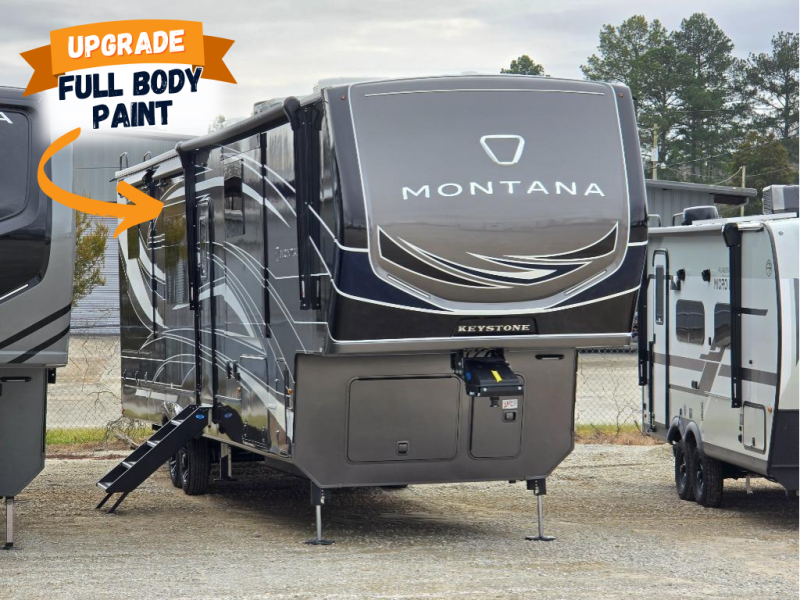 Enjoy luxury, innovation, and the outdoors in any one of Montana's finest fifth wheels. Each set the standard with exceptional features, and exciting factory installed options to provide you a great home on the road. Keystone's 12" I-beam chassis with z-frame technology provides a strong and durable foundation to your fifth wheel, and the four season living package will help extend your camping season. A few other construction features you will appreciate include a MORryde CRE3000 suspension, a fully walkable roof with an alpha seamless TPO membrane system, and 4k square frameless tinted safety glass windows. Each feature stylish interiors with two decor choices paired with beautiful hardwood cabinetry, Beauflor vinyl flooring throughout, central vacuum, plus a La-Z-Boy furniture package for all-around comfort!