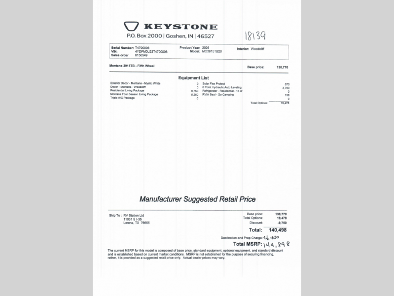 New 2026 Keystone RV Montana 3915TB Fifth Wheel