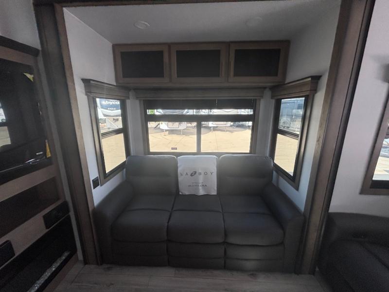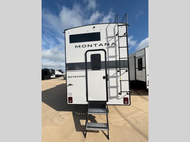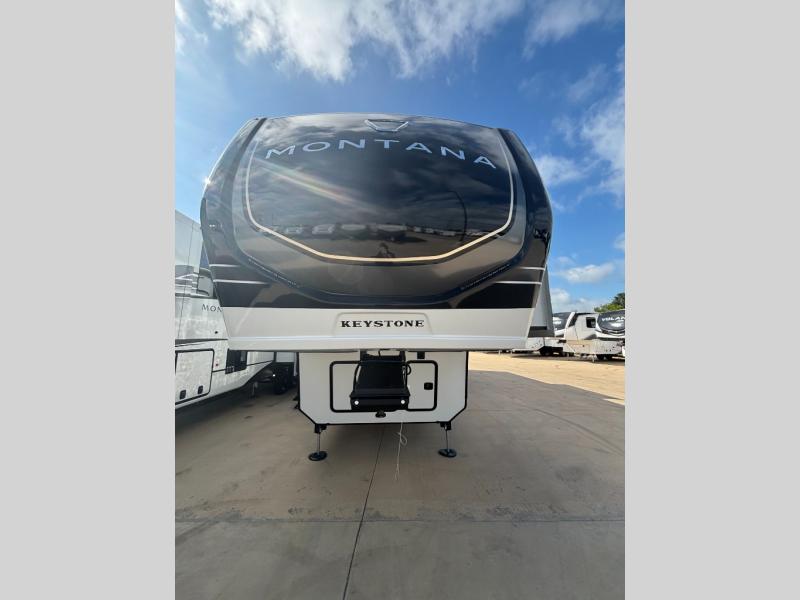 Enjoy luxury, innovation, and the outdoors in any one of Montana's finest fifth wheels. Each set the standard with exceptional features, and exciting factory installed options to provide you a great home on the road. Keystone's 12" I-beam chassis with z-frame technology provides a strong and durable foundation to your fifth wheel, and the four season living package will help extend your camping season. A few other construction features you will appreciate include a MORryde CRE3000 suspension, a fully walkable roof with an alpha seamless TPO membrane system, and 4k square frameless tinted safety glass windows. Each feature stylish interiors with two decor choices paired with beautiful hardwood cabinetry, Beauflor vinyl flooring throughout, central vacuum, plus a La-Z-Boy furniture package for all-around comfort!