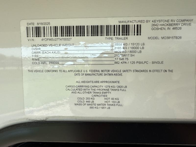 New 2026 Keystone RV Montana 3915TB Fifth Wheel