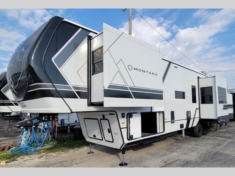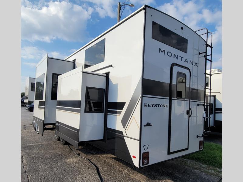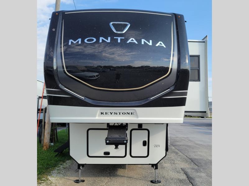 Enjoy luxury, innovation, and the outdoors in any one of Montana's finest fifth wheels. Each set the standard with exceptional features, and exciting factory installed options to provide you a great home on the road. Keystone's 12" I-beam chassis with z-frame technology provides a strong and durable foundation to your fifth wheel, and the four season living package will help extend your camping season. A few other construction features you will appreciate include a MORryde CRE3000 suspension, a fully walkable roof with an alpha seamless TPO membrane system, and 4k square frameless tinted safety glass windows. Each feature stylish interiors with two decor choices paired with beautiful hardwood cabinetry, Beauflor vinyl flooring throughout, central vacuum, plus a La-Z-Boy furniture package for all-around comfort!