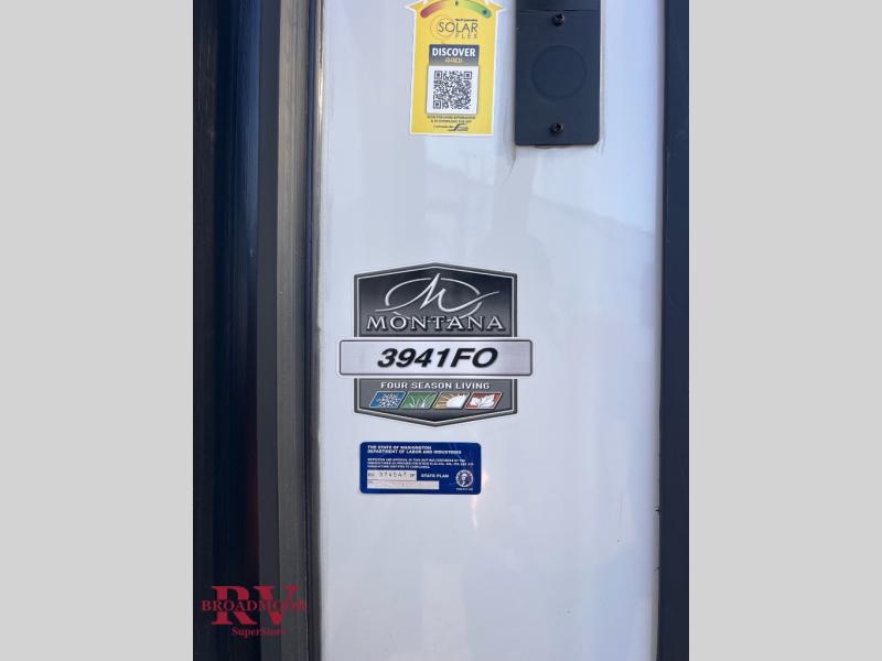 Optional Equipment Installed On This Unit: Residential Living Package, Montana Four Season Living Package, 2" Accessory Hitch, 6-Point Hydraulic Auto Leveling, Solar Flex Discover