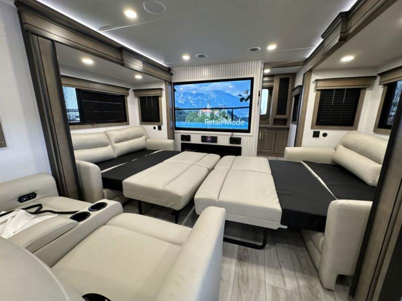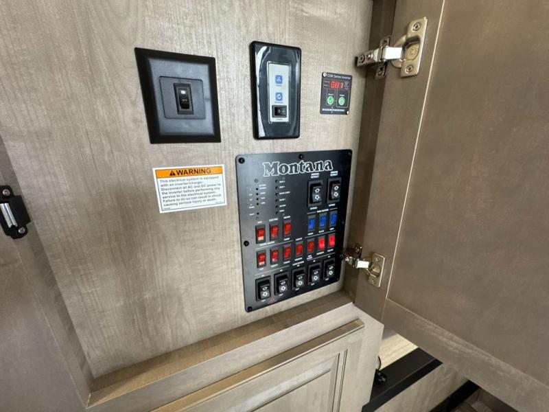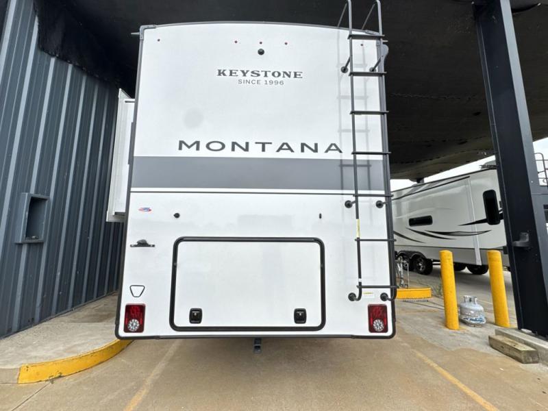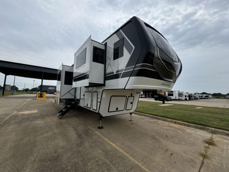Enjoy luxury, innovation, and the outdoors in any one of Montana's finest fifth wheels. Each set the standard with exceptional features, and exciting factory installed options to provide you a great home on the road. Keystone's 12" I-beam chassis with z-frame technology provides a strong and durable foundation to your fifth wheel, and the four season living package will help extend your camping season. A few other construction features you will appreciate include a MORryde CRE3000 suspension, a fully walkable roof with an alpha seamless TPO membrane system, and 4k square frameless tinted safety glass windows. Each feature stylish interiors with two decor choices paired with beautiful hardwood cabinetry, Beauflor vinyl flooring throughout, central vacuum, plus a La-Z-Boy furniture package for all-around comfort!