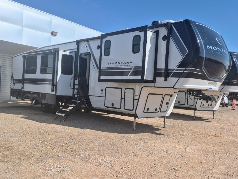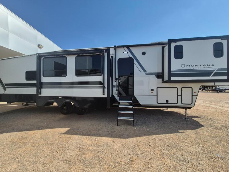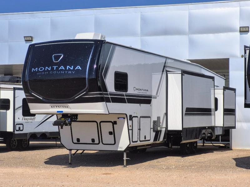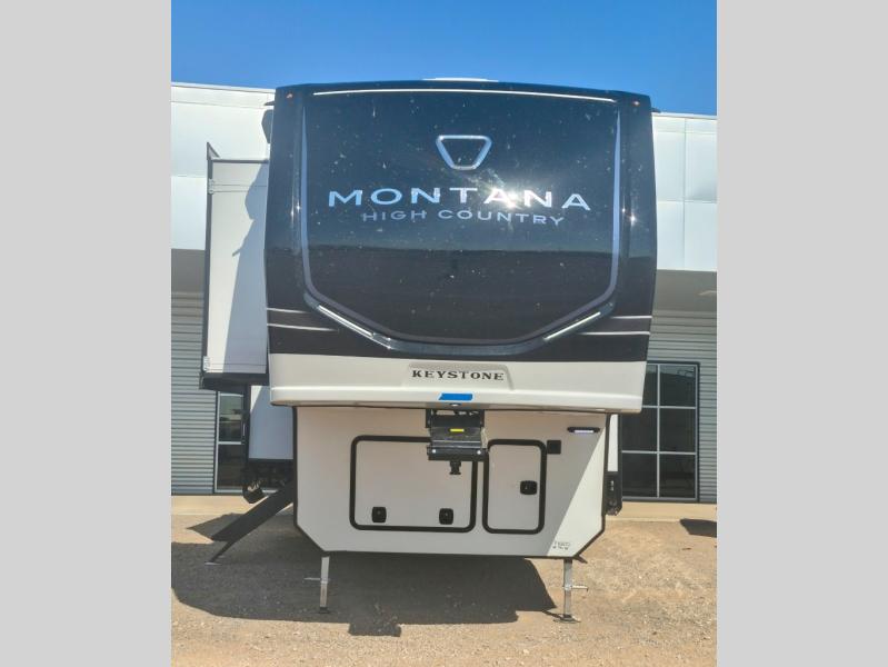 Live the high life with a Keystone Montana High Country fifth wheel! You'll have all the luxury you need with these units. They come with a MaxTurn™ front cap with KeyShield™ automotive-grade paint, a fully walkable roof with Alpha seamless TPO membrane system, and an insulated underbelly with forced hot air and electric tank heaters. The MORryde CRE3000 suspension with wet bolts helps provide a smooth tow, and the Ground Control® four-point electric auto-leveling with hitch memory will make set-up quite easy. The interior is elegantly appointed with the Thomas Payne Collection furniture, hardwood decorative slide-out fascia, Beauflor® vinyl throughout, accent crown molding, and premium solid surface kitchen countertops.