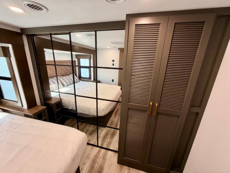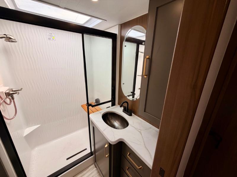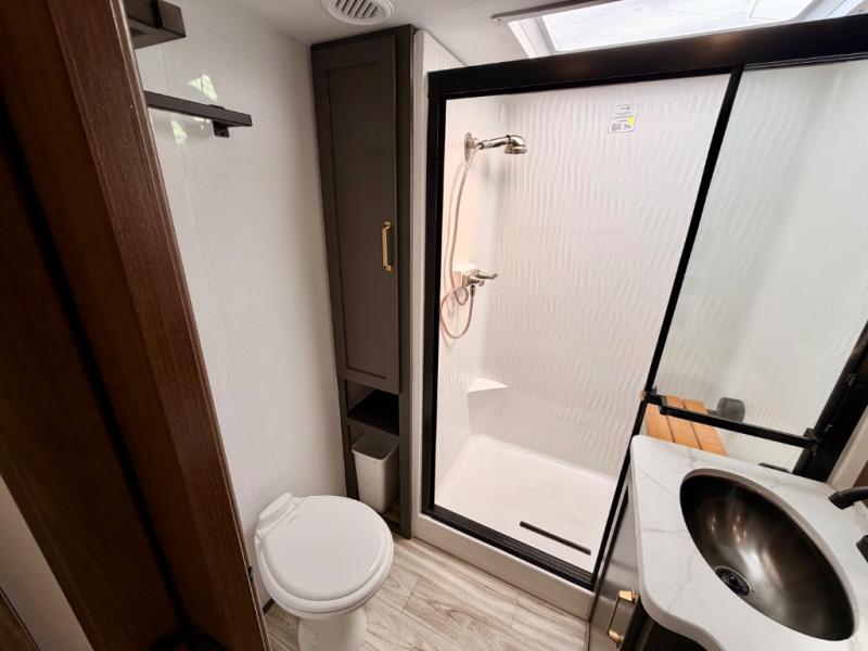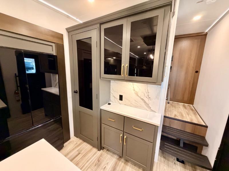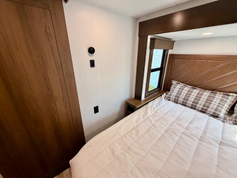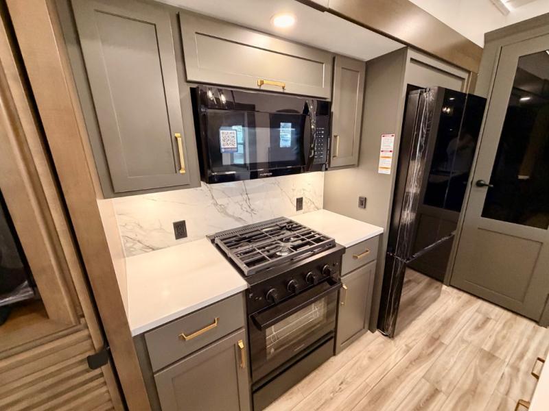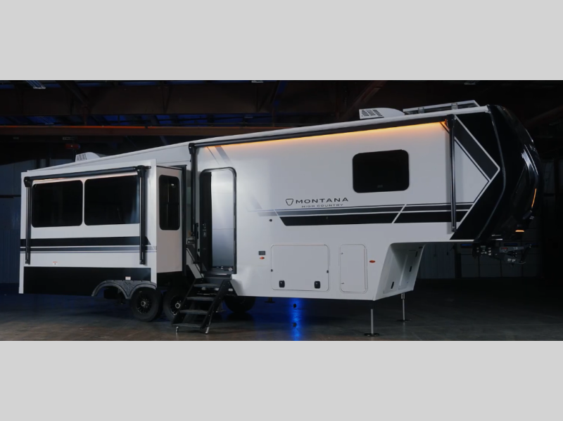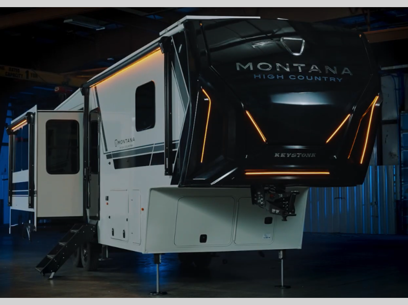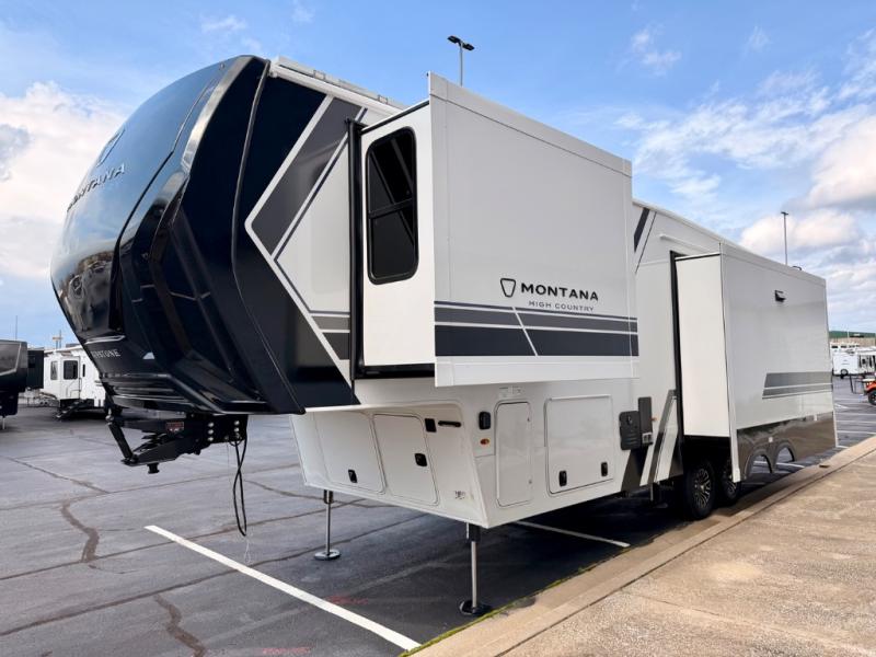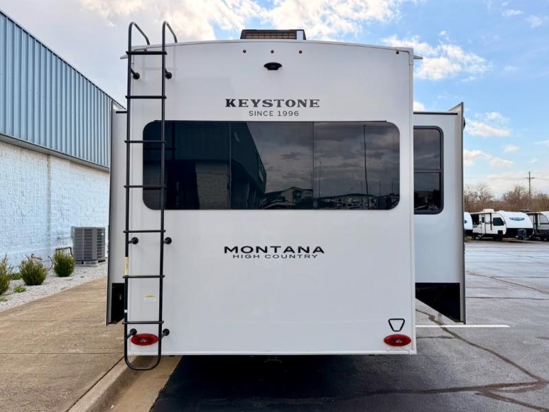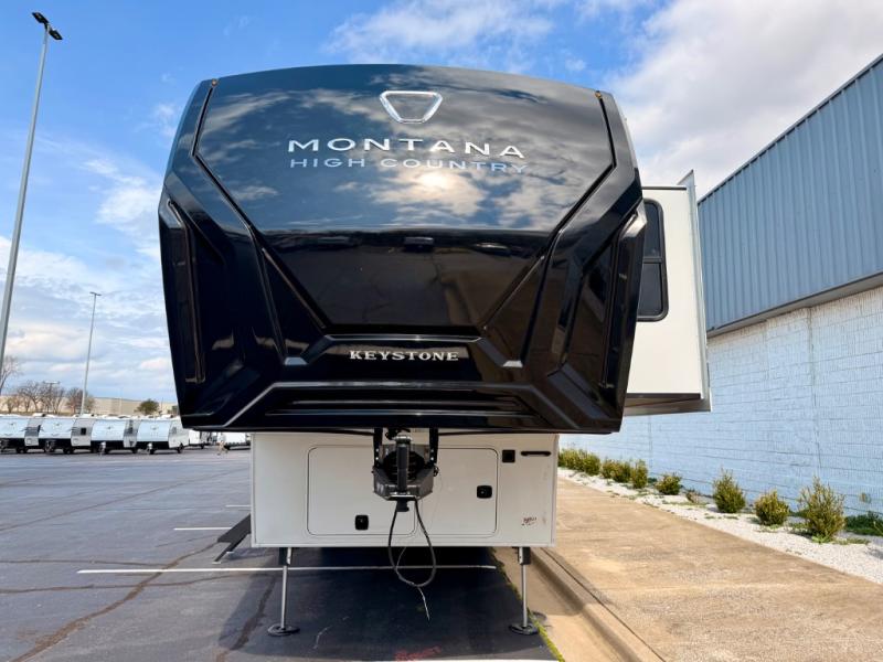 With any Montana High Country fifth wheel by Keystone, you'll find comfort and convenience at every turn! Each unit is built with a fully walkable roof with an Alpha seamless TPO membrane system, 2" thick composite backed high-gloss fiberglass sidewalls, plus an insulated underbelly with forced hot air and electric tank heaters for added protection against the elements. The Blade Pure airflow system provides efficient cooling, and the Tru-Fit slide construction is a durable slide design that minimizes functional motor structural stress and resists leaking. Inside, you'll find roller shades throughout, premium solid surface kitchen countertops, bedside USB and 110V outlets, plus a porcelain foot flush toilet in the bath to name a few comforts.