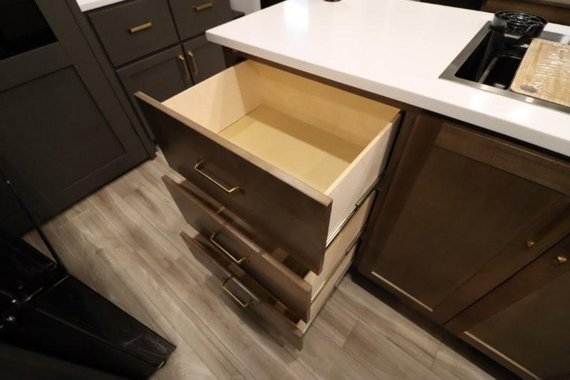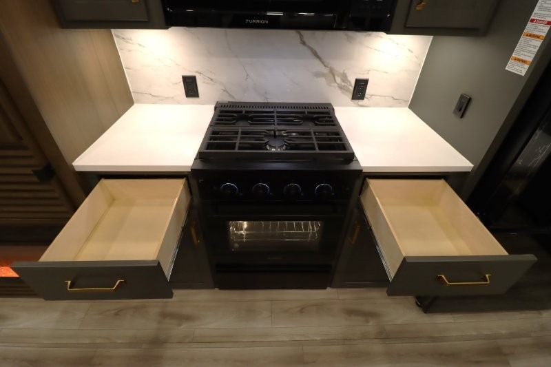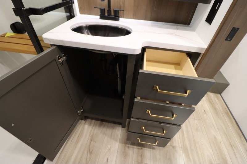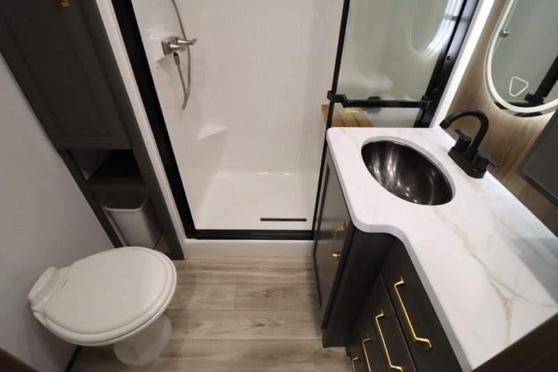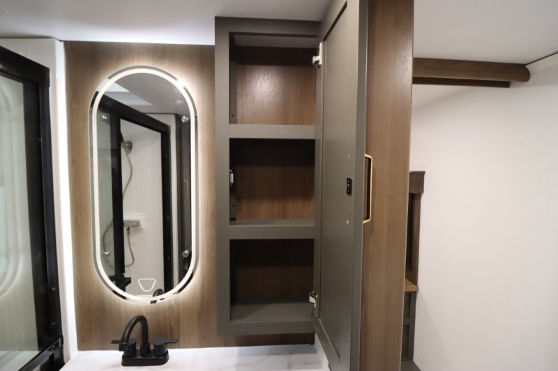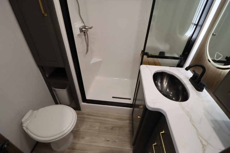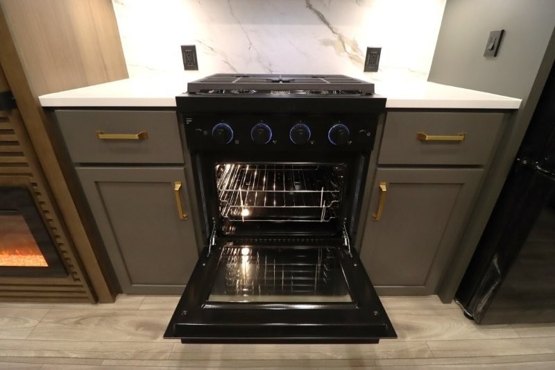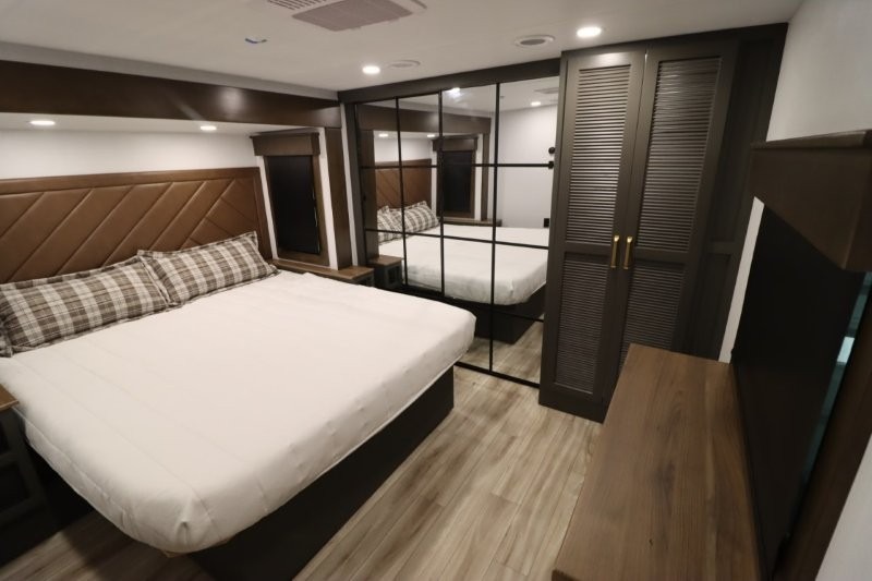 With any Montana High Country fifth wheel by Keystone, you'll find comfort and convenience at every turn! Each unit is built with a fully walkable roof with an Alpha seamless TPO membrane system, 2" thick composite backed high-gloss fiberglass sidewalls, plus an insulated underbelly with forced hot air and electric tank heaters for added protection against the elements. The Blade Pure airflow system provides efficient cooling, and the Tru-Fit slide construction is a durable slide design that minimizes functional motor structural stress and resists leaking. Inside, you'll find roller shades throughout, premium solid surface kitchen countertops, bedside USB and 110V outlets, plus a porcelain foot flush toilet in the bath to name a few comforts.