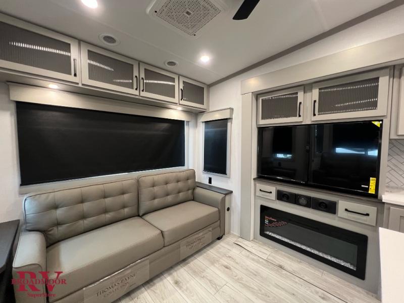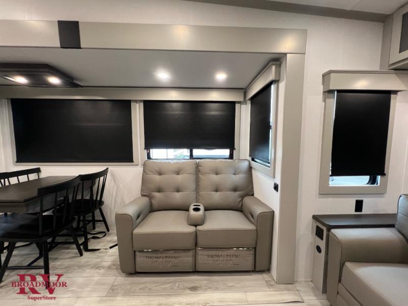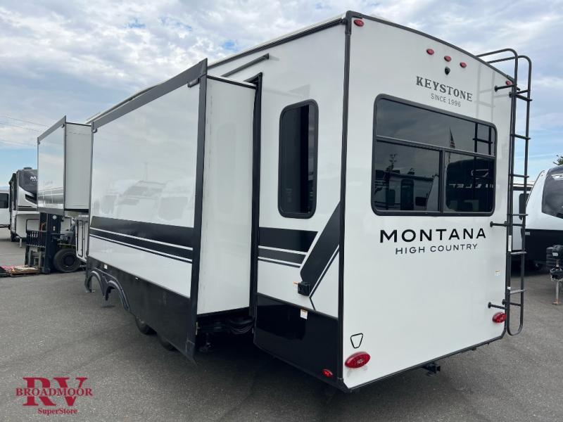 Live the high life with a Keystone Montana High Country fifth wheel! You'll have all the luxury you need with these units. They come with a MaxTurn™ front cap with KeyShield™ automotive-grade paint, a fully walkable roof with Alpha seamless TPO membrane system, and an insulated underbelly with forced hot air and electric tank heaters. The MORryde CRE3000 suspension with wet bolts helps provide a smooth tow, and the Ground Control® four-point electric auto-leveling with hitch memory will make set-up quite easy. The interior is elegantly appointed with the Thomas Payne Collection furniture, hardwood decorative slide-out fascia, Beauflor® vinyl throughout, accent crown molding, and premium solid surface kitchen countertops.