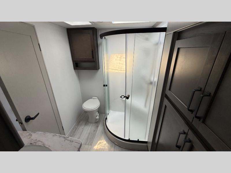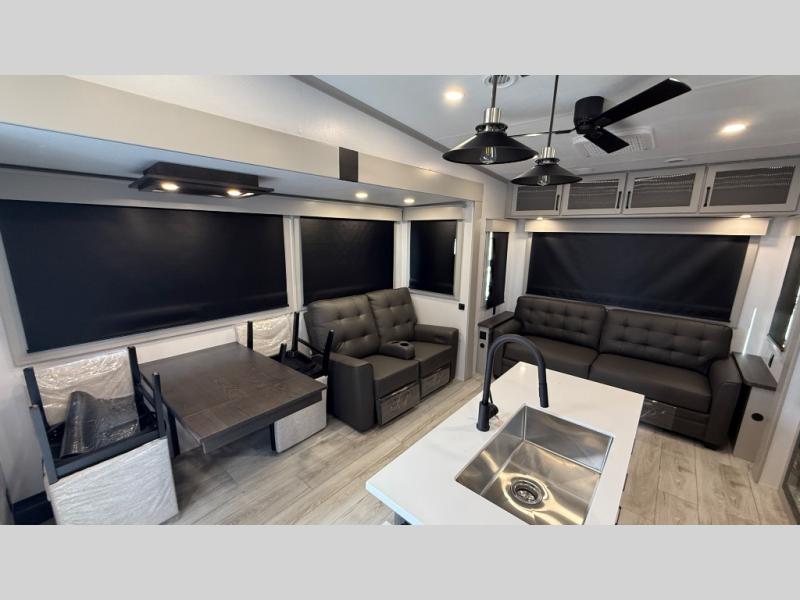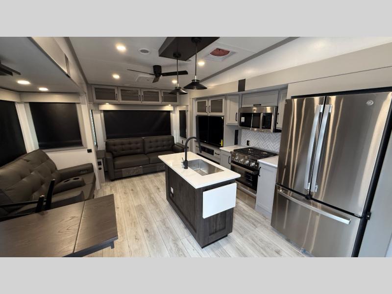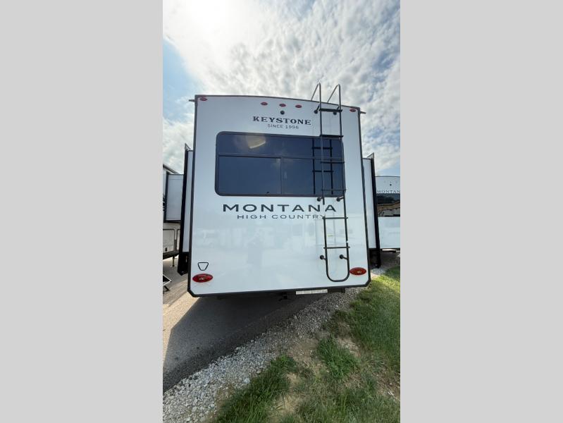 Live the high life with a Keystone Montana High Country fifth wheel! You'll have all the luxury you need with these units. They come with a MaxTurn™ front cap with KeyShield™ automotive-grade paint, a fully walkable roof with Alpha seamless TPO membrane system, and an insulated underbelly with forced hot air and electric tank heaters. The MORryde CRE3000 suspension with wet bolts helps provide a smooth tow, and the Ground Control® four-point electric auto-leveling with hitch memory will make set-up quite easy. The interior is elegantly appointed with the Thomas Payne Collection furniture, hardwood decorative slide-out fascia, Beauflor® vinyl throughout, accent crown molding, and premium solid surface kitchen countertops.