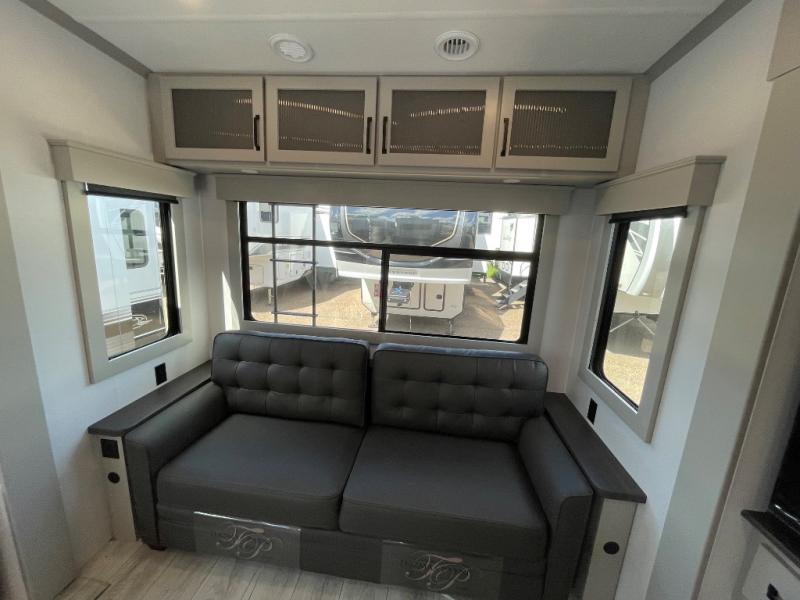 Live the high life with a Keystone Montana High Country fifth wheel! You'll have all the luxury you need with these units. They come with a MaxTurn™ front cap with KeyShield™ automotive-grade paint, a fully walkable roof with Alpha seamless TPO membrane system, and an insulated underbelly with forced hot air and electric tank heaters. The MORryde CRE3000 suspension with wet bolts helps provide a smooth tow, and the Ground Control® four-point electric auto-leveling with hitch memory will make set-up quite easy. The interior is elegantly appointed with the Thomas Payne Collection furniture, hardwood decorative slide-out fascia, Beauflor® vinyl throughout, accent crown molding, and premium solid surface kitchen countertops.