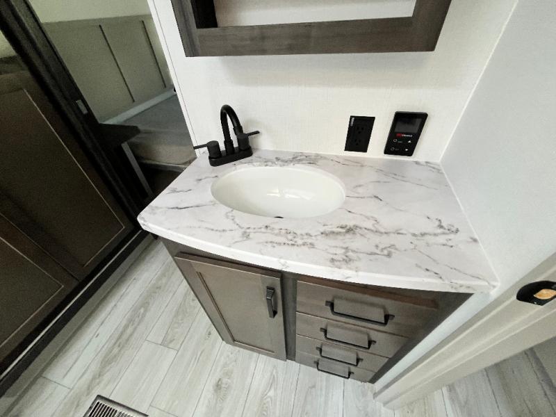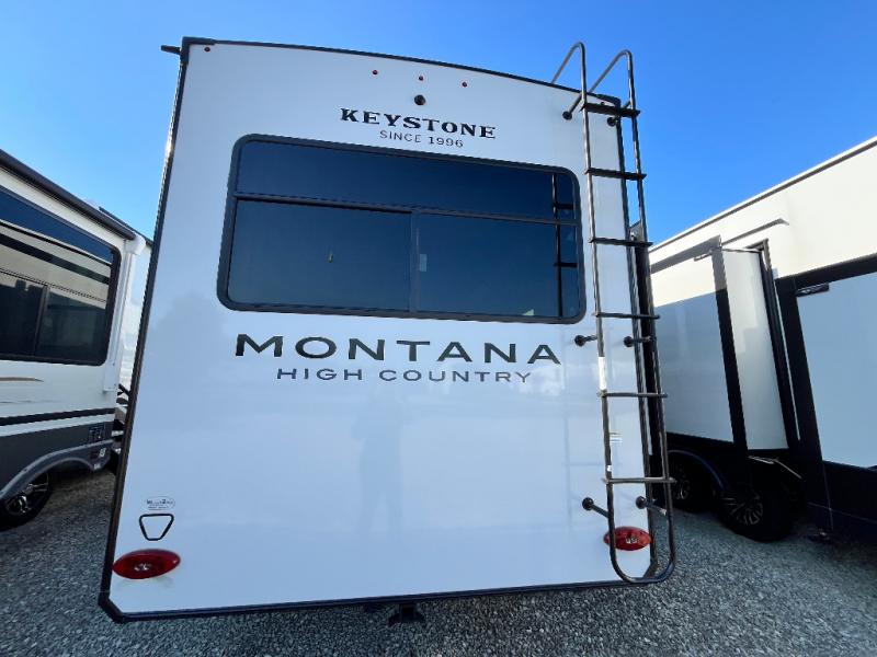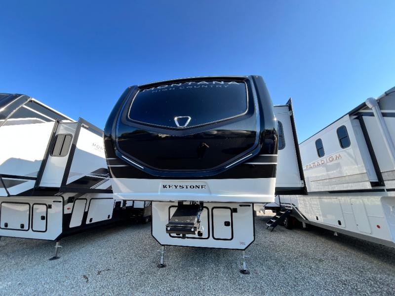 Live the high life with a Keystone Montana High Country fifth wheel! You'll have all the luxury you need with these units. They come with a MaxTurn™ front cap with KeyShield™ automotive-grade paint, a fully walkable roof with Alpha seamless TPO membrane system, and an insulated underbelly with forced hot air and electric tank heaters. The MORryde CRE3000 suspension with wet bolts helps provide a smooth tow, and the Ground Control® four-point electric auto-leveling with hitch memory will make set-up quite easy. The interior is elegantly appointed with the Thomas Payne Collection furniture, hardwood decorative slide-out fascia, Beauflor® vinyl throughout, accent crown molding, and premium solid surface kitchen countertops.