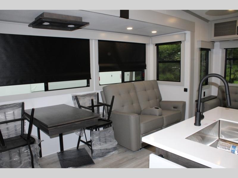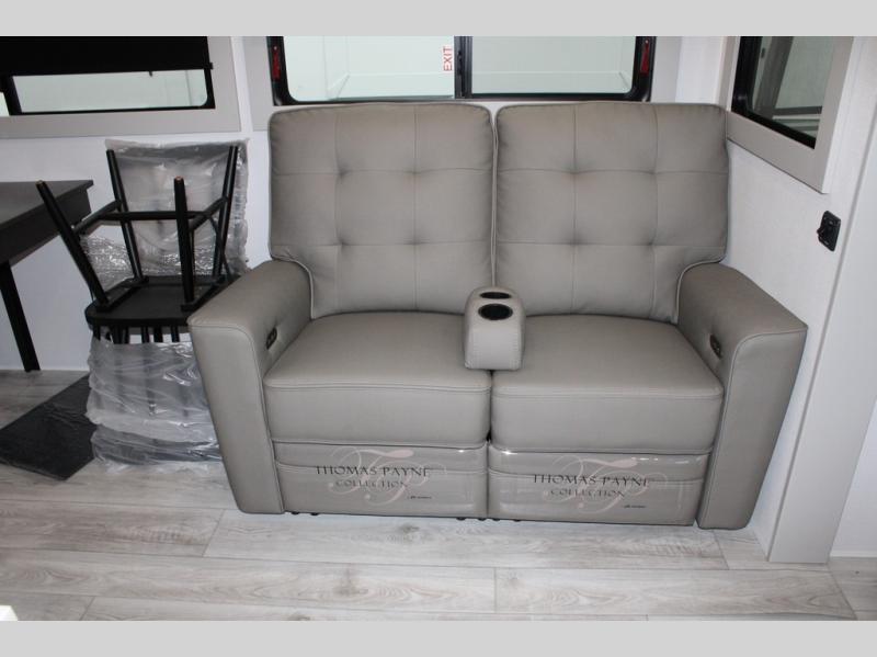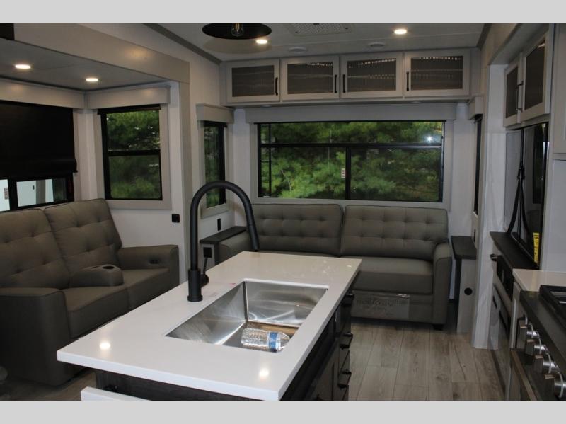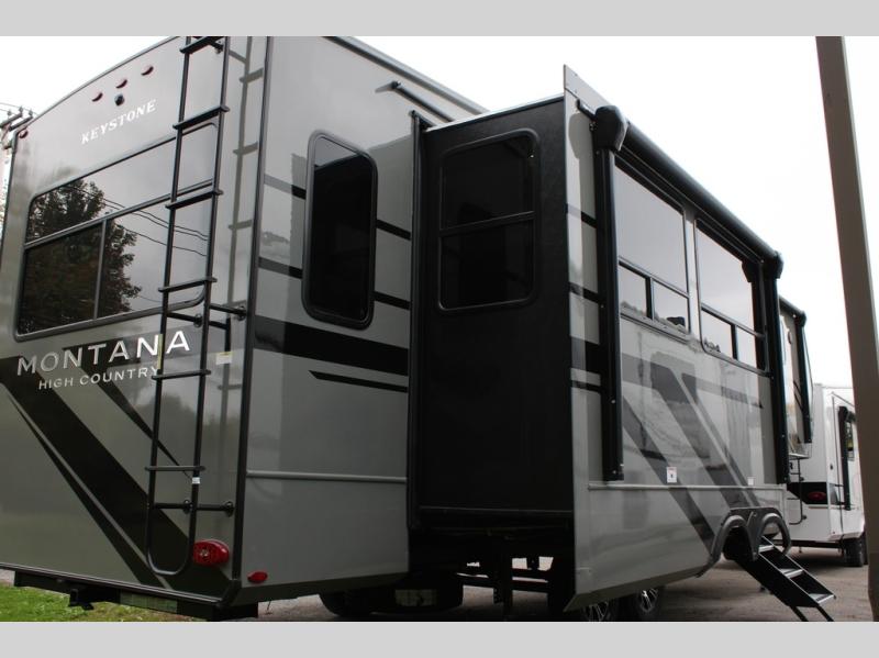 Live the high life with a Keystone Montana High Country fifth wheel! You'll have all the luxury you need with these units. They come with a MaxTurn™ front cap with KeyShield™ automotive-grade paint, a fully walkable roof with Alpha seamless TPO membrane system, and an insulated underbelly with forced hot air and electric tank heaters. The MORryde CRE3000 suspension with wet bolts helps provide a smooth tow, and the Ground Control® four-point electric auto-leveling with hitch memory will make set-up quite easy. The interior is elegantly appointed with the Thomas Payne Collection furniture, hardwood decorative slide-out fascia, Beauflor® vinyl throughout, accent crown molding, and premium solid surface kitchen countertops.