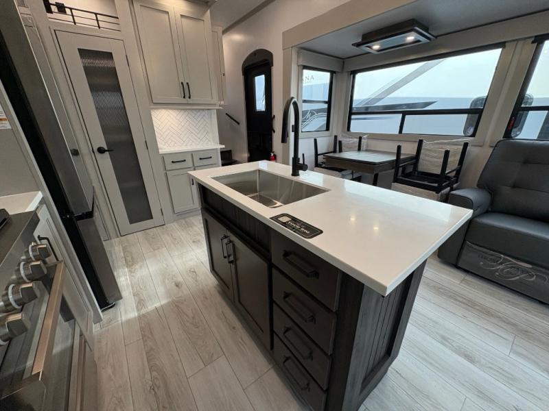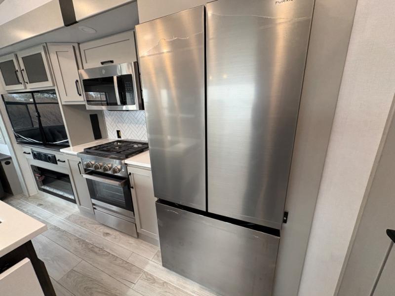 Live the high life with a Keystone Montana High Country fifth wheel! You'll have all the luxury you need with these units. They come with a MaxTurn™ front cap with KeyShield™ automotive-grade paint, a fully walkable roof with Alpha seamless TPO membrane system, and an insulated underbelly with forced hot air and electric tank heaters. The MORryde CRE3000 suspension with wet bolts helps provide a smooth tow, and the Ground Control® four-point electric auto-leveling with hitch memory will make set-up quite easy. The interior is elegantly appointed with the Thomas Payne Collection furniture, hardwood decorative slide-out fascia, Beauflor® vinyl throughout, accent crown molding, and premium solid surface kitchen countertops.